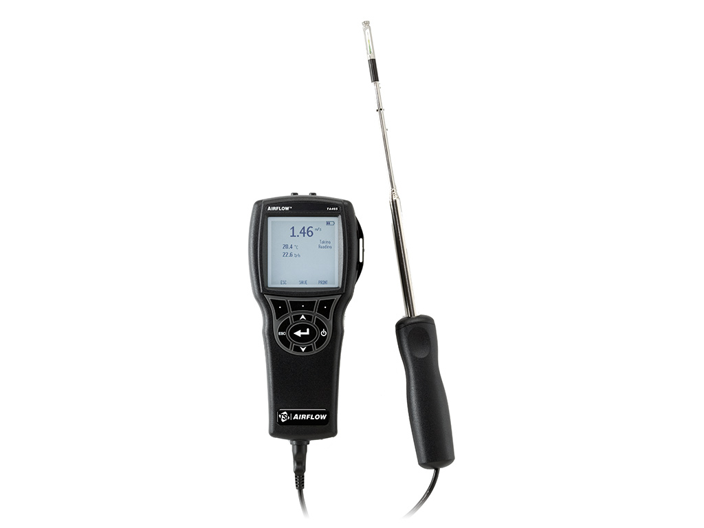 便携式手持式Airflow 多功能风速计TA465-P包括差压传感器。可选探头提供测量空气流速,温度和湿度的能力,以及计算空气流量,湿球,露点和湍流的能力。