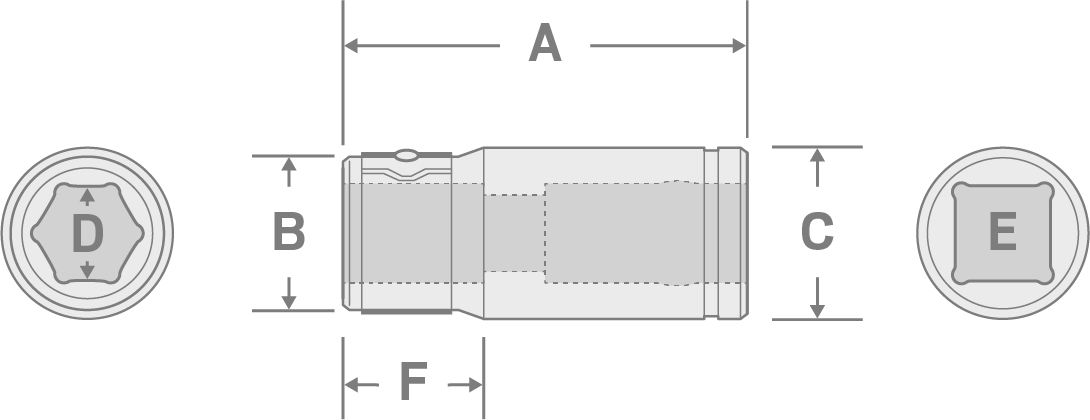 Narrowed diameter stretches to the base of the socket on small, deep-length sizes. This provides greater reach into tight, recessed areas.