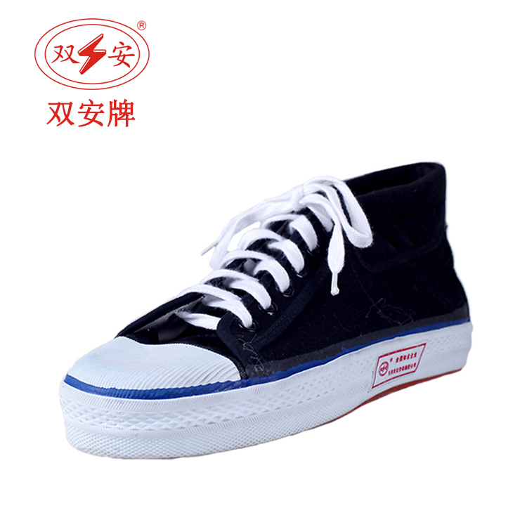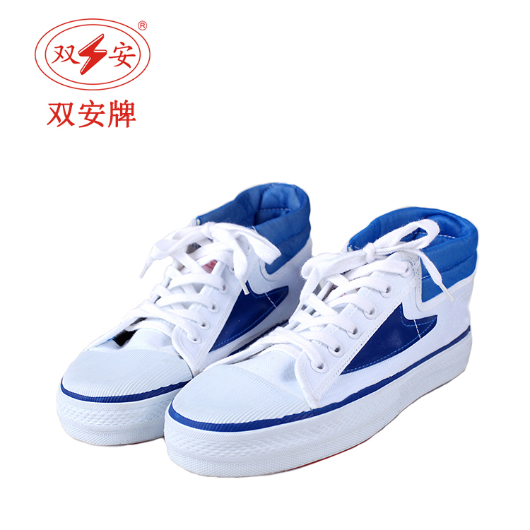 双安牌电绝缘布面胶鞋。鞋帮、鞋里布均以棉布为基材加工而成,围条、包头、大底均用进口3#天然橡胶加工而成。分别为5kV、10kV、15kV等级别,主要适用于工频电压1kV~15kV之间高低压、电器设备作业时为足部防触电辅助安全用具。