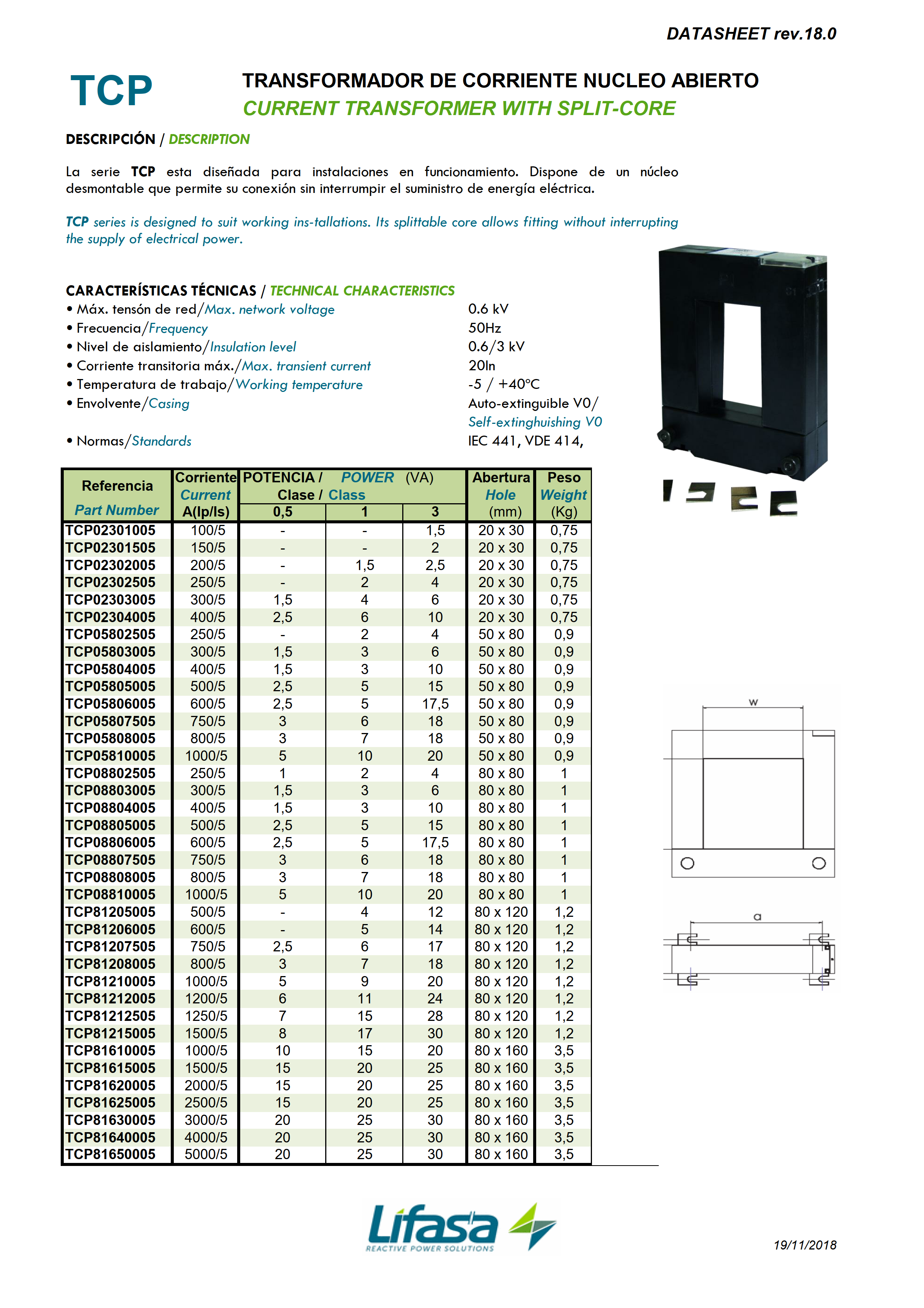 | TCP05806005 | 600/5 | 2,5 | 5 | 17,5 | 50×80 | 0,9 |