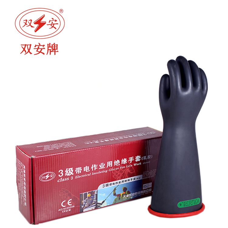双安牌乳胶带电作业用绝缘手套,采用天然乳胶材料,为使用者提供很好的绝缘性能,加强的耐用性,灵活性,舒适性和机械强度。手套采用手型设计,配合乳胶材质,能够降低使用者手的疲劳度并减少擦伤,手套的卷边设计能够方便使用者佩戴及移除。