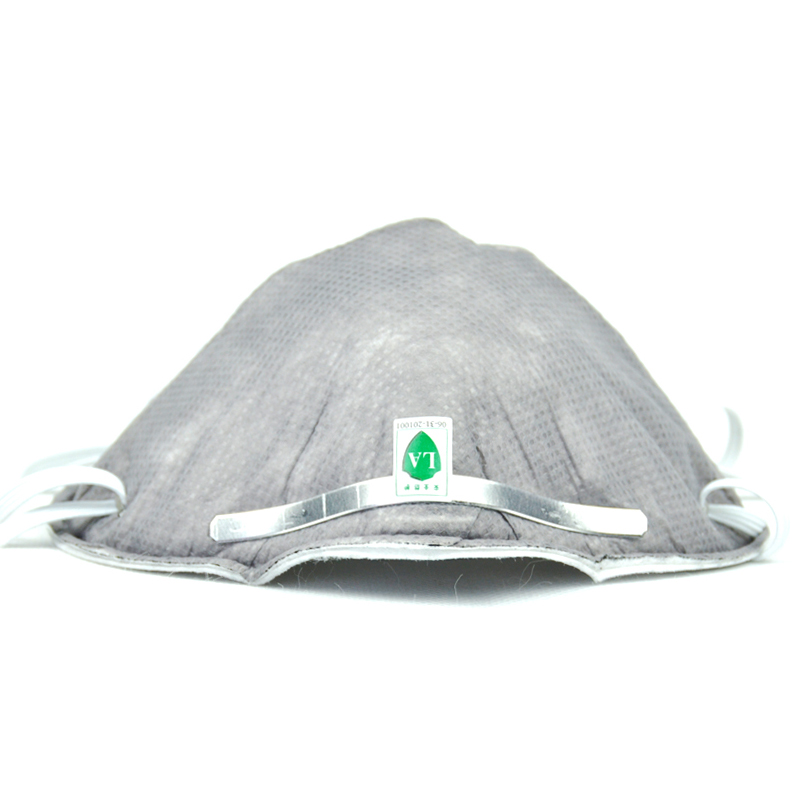 普通纱布口罩:采用普通拦截过滤原理,只能过滤大颗粒粉尘,对呼吸性粉尘过滤效果差;传统平面设计,无法保证与脸部密合,粉尘能轻易从不密合处漏入。