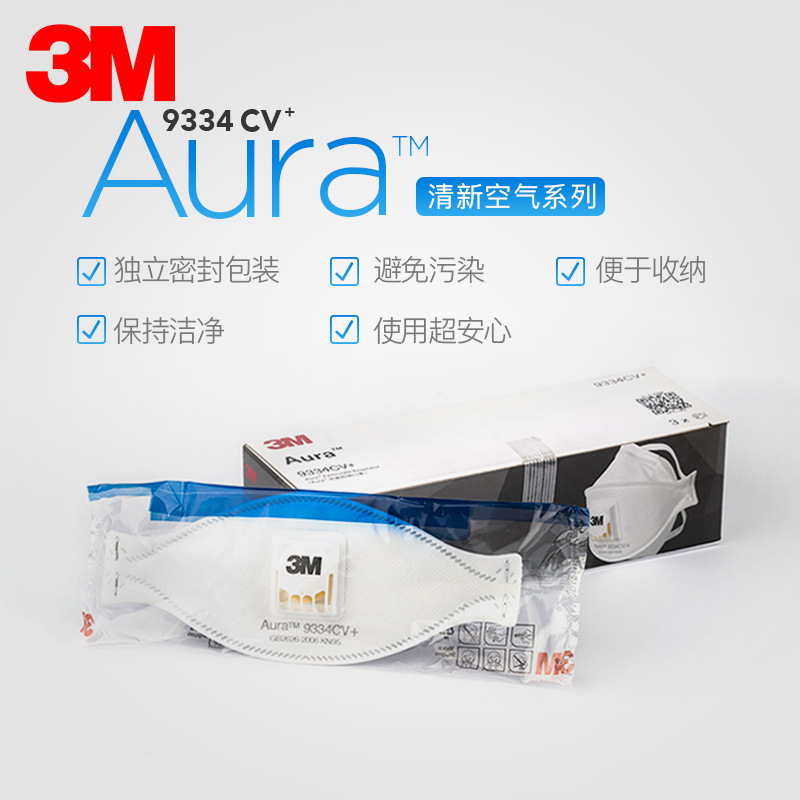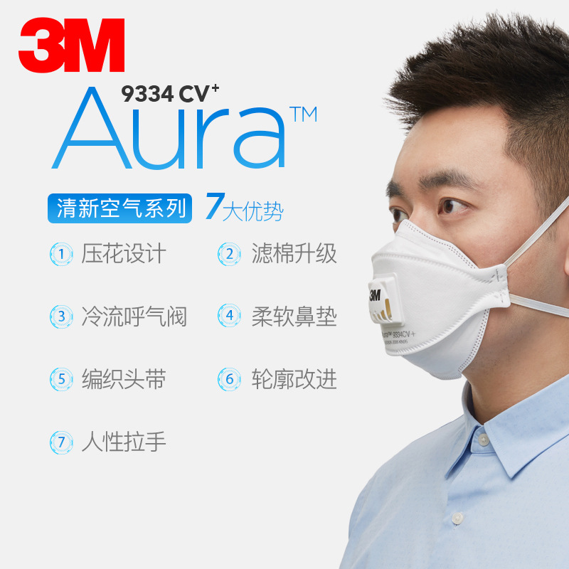 3M 9334CV+防护颗粒物粉尘雾霾带呼吸阀口罩KN95级舒适防尘口罩