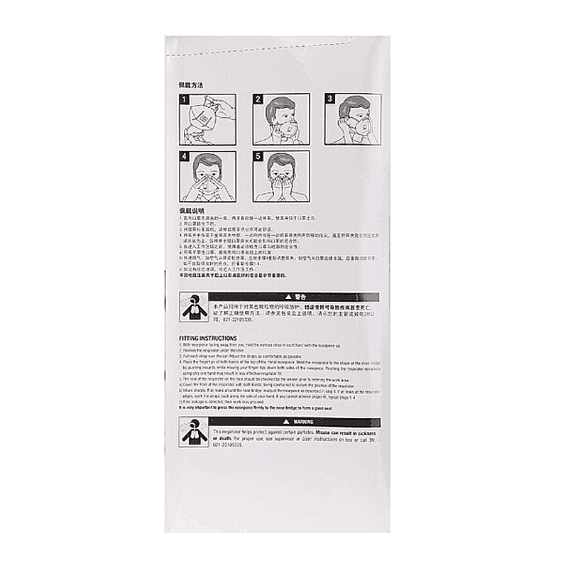 2、每次佩戴3M防护口罩后,应立即做佩戴密合性检查,确保口罩佩戴位置正确。