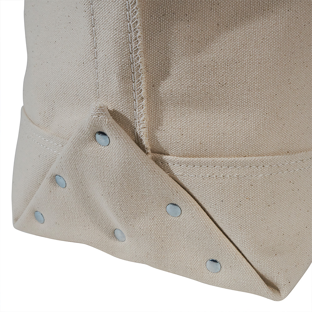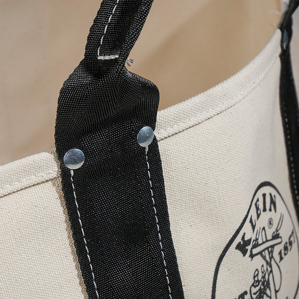 This classic bag is a staple for the electrician. Made of heavy-duty No. 6 natural canvas, this bag will stand the test of time. Extra reinforcement on the bottom allows you to put this bag down without worrying about wear and tear.