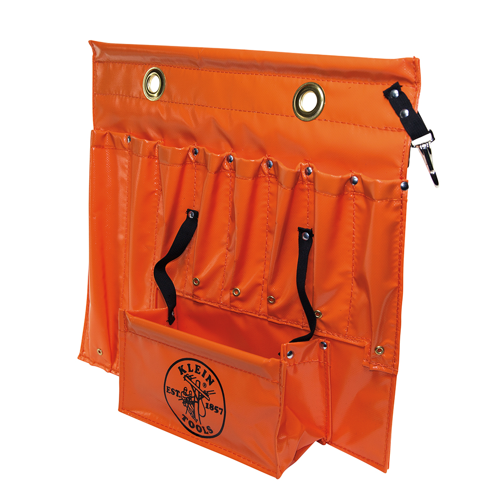 With this aerial apron, you can stay focused on finishing the job, not finding your tools. High-viz orange for easy visibility. This versatile apron features multiple pockets, pouches, holders, loops and hooks to organize your tools. Durably constructed for long life.