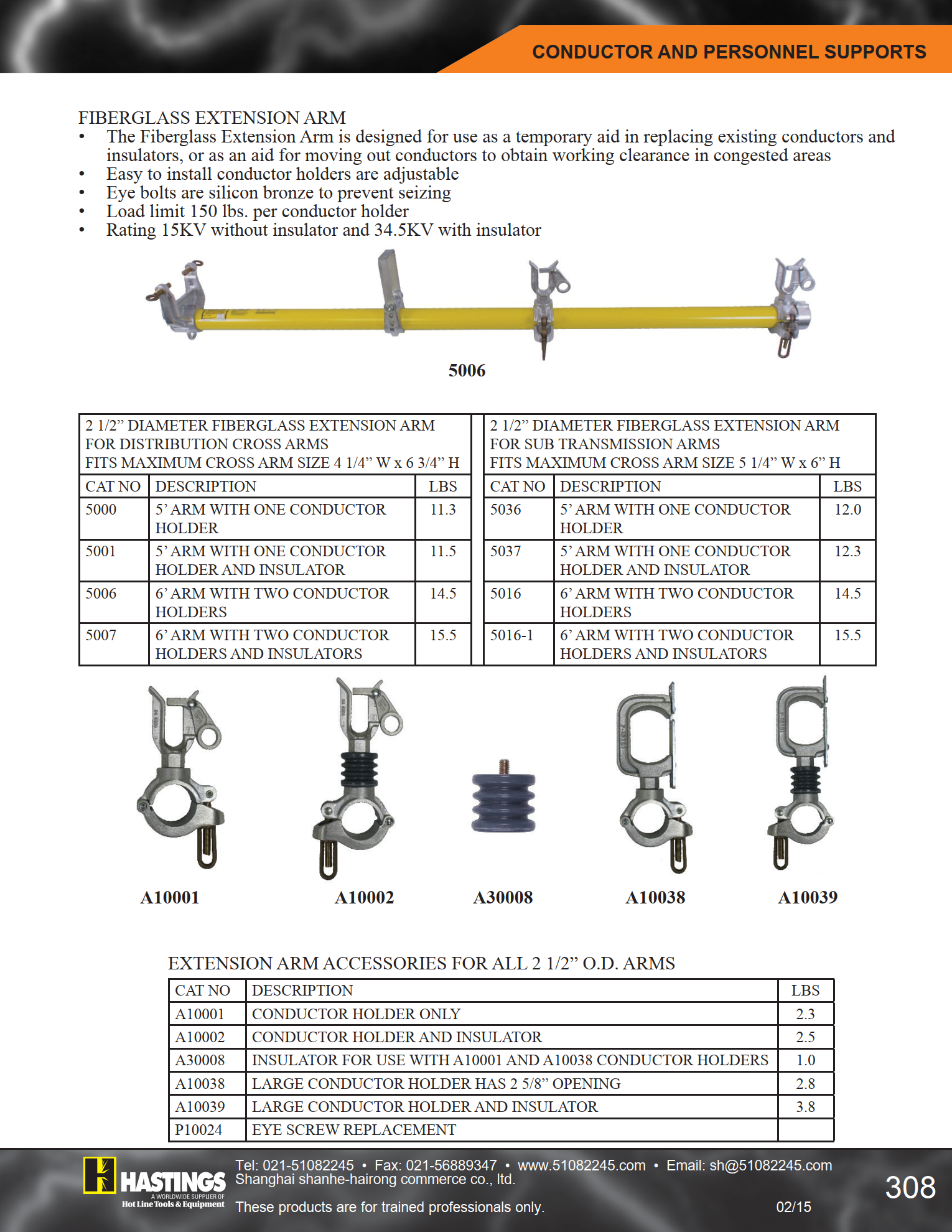 5016-1 6’ ARM WITH TWO CONDUCTOR HOLDERS AND INSULATORS? 15.5