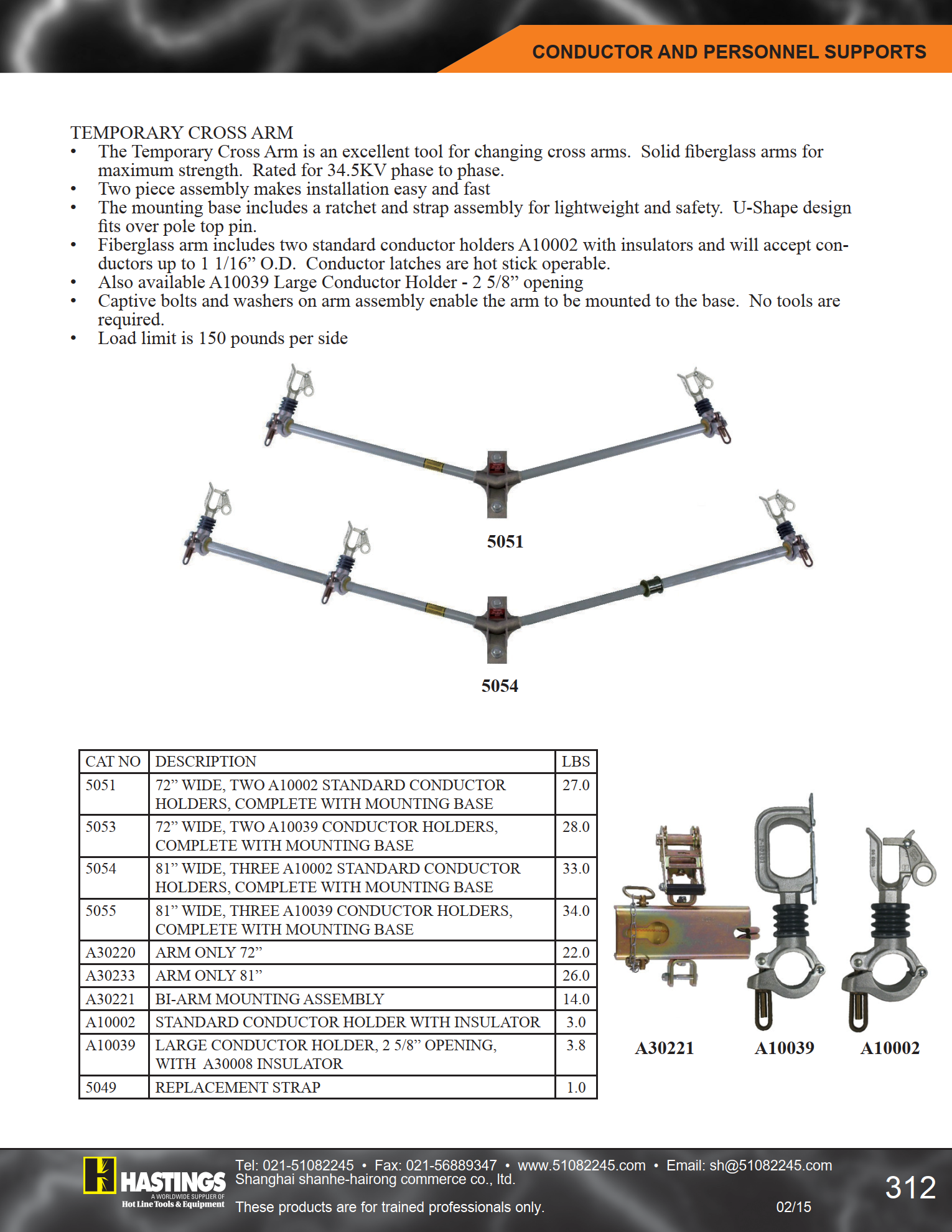 ? Fiberglass arm includes two standard conductor holders A10002 with insulators and will accept con-ductors up to 1 1/16” O.D. Conductor latches are hot stick operable.