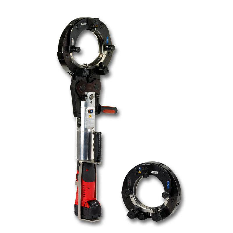 With a pressing force of 100 kN and a working stroke of 60 mm, the new pressing unit ACO401 provides sufficient energy for special applications with larger pipe dimensions. Sprinkler installations, fire-extinguishing systems or special industrial systems with dimensions from 76.1 to 168.3 mm do not pose any problem for the ACO401. Due to the powerful, rechargeable lithium-ion batteries, 15 – 20 press cycles can be carried out without recharging the battery.