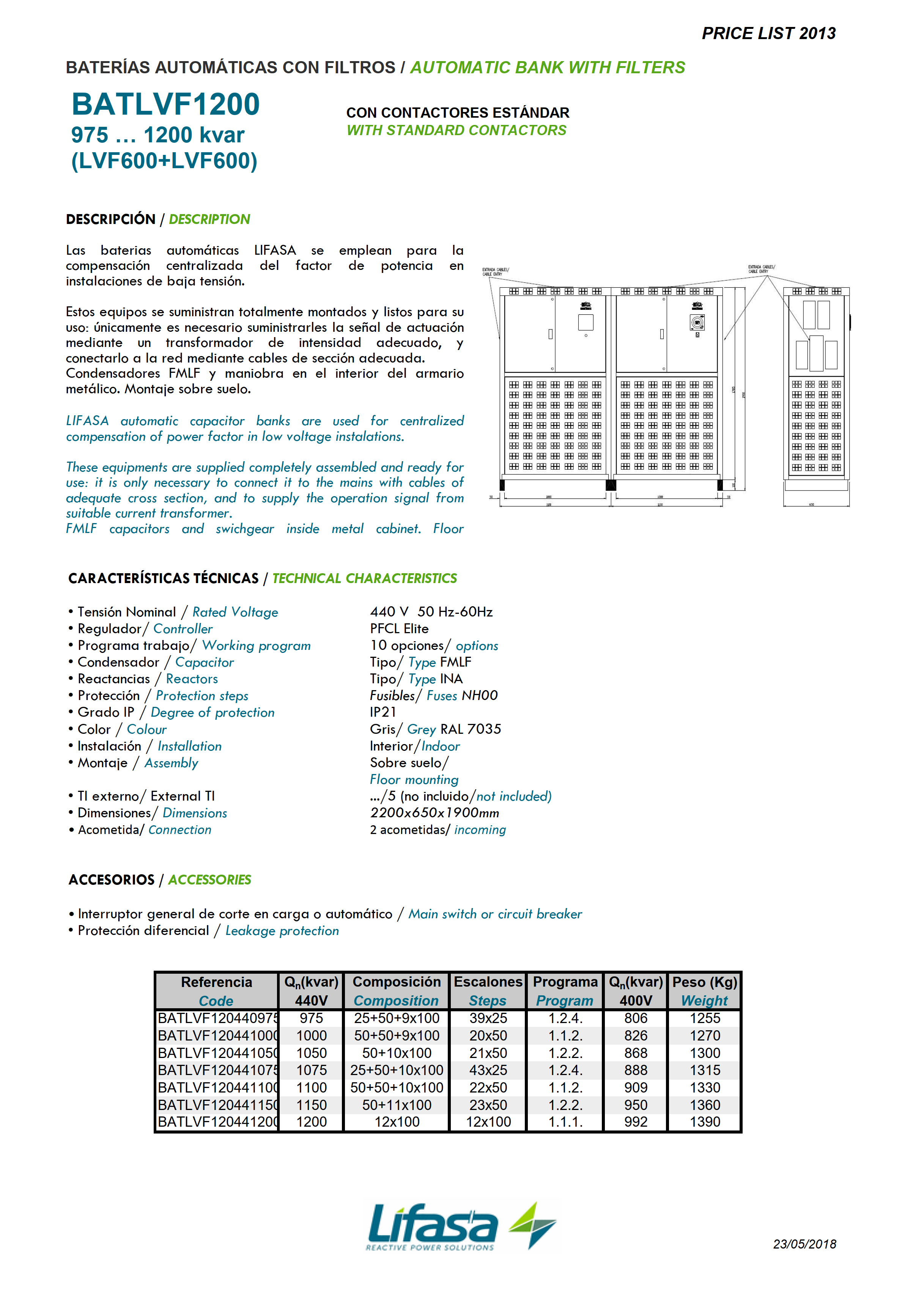 Automatic capacitor banks with filters with standard contactors BATLVF1200