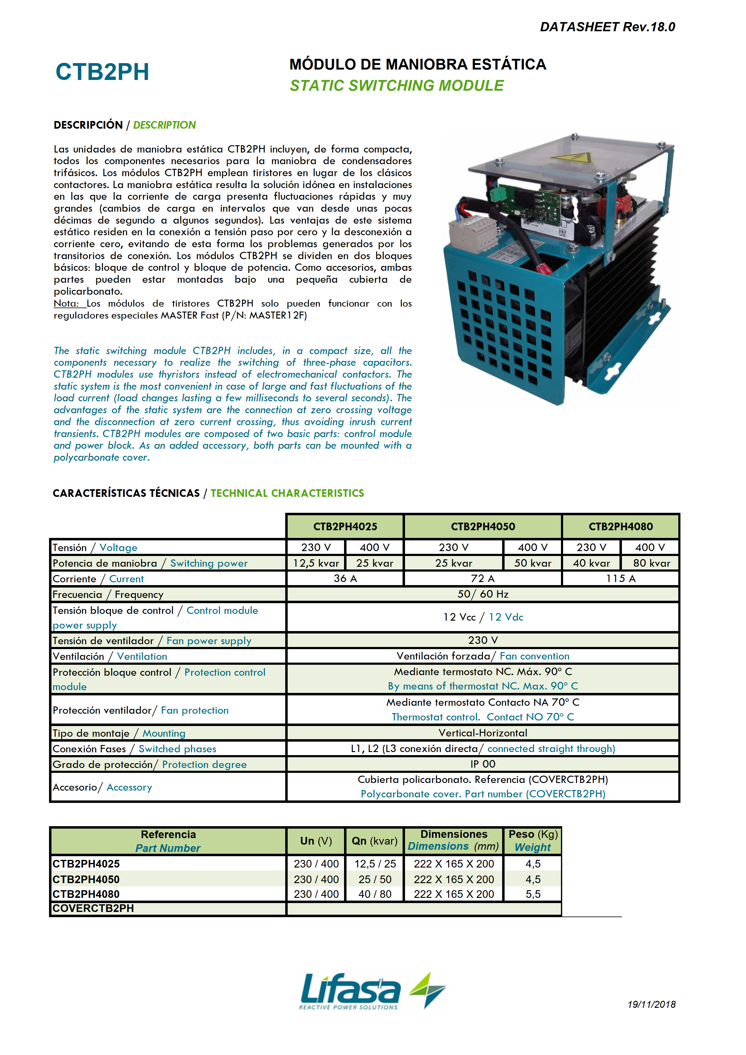 | CTB2PH4080 | 230/400 | 40/80 | 222x165x200 | 5,5 |