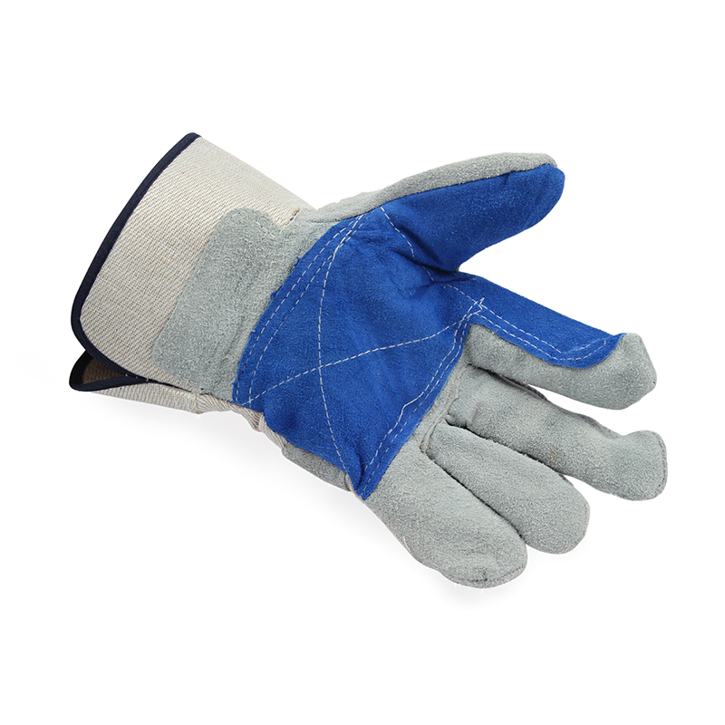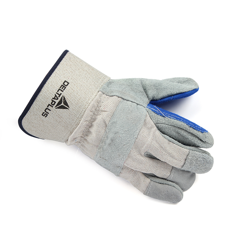 产品描述 :带衬里牛皮手套,美式截面,拇指处有蓝色牛皮加强设计,整牛皮指尖,掌背有牛皮加强部分,白色全棉掌背和袖口,掌面和拇指有蓝色牛皮加强部分,弹性掌背,加有滚边以保护拇指和掌面的接缝,掌面和手指有棉布衬里。