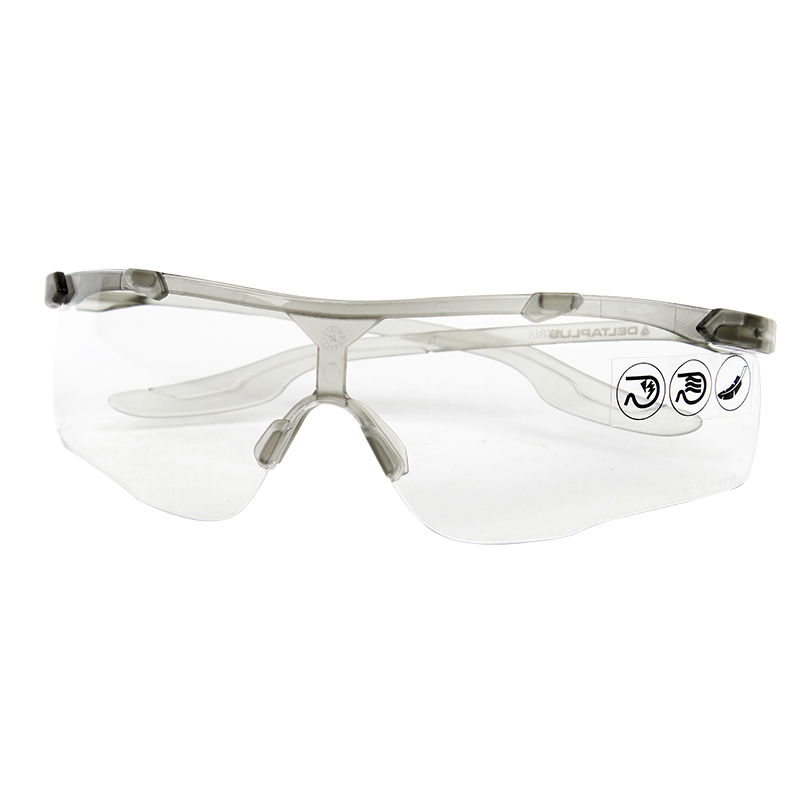 代尔塔101138 防刮擦防反光安全眼镜,轻型透明PC安全防护眼镜,匙型镜脚,铰链无金属螺钉,鼻翼及支架同样无金属设计。整体重量仅18g,长时间佩戴时感觉不到眼镜带来的疲劳感。