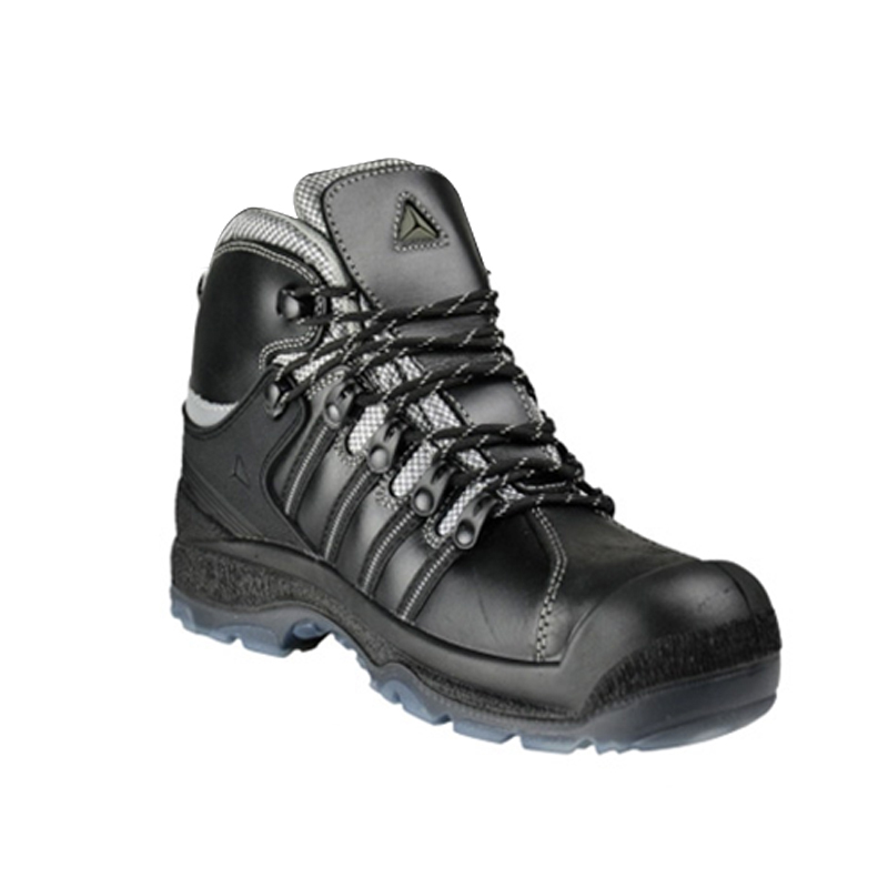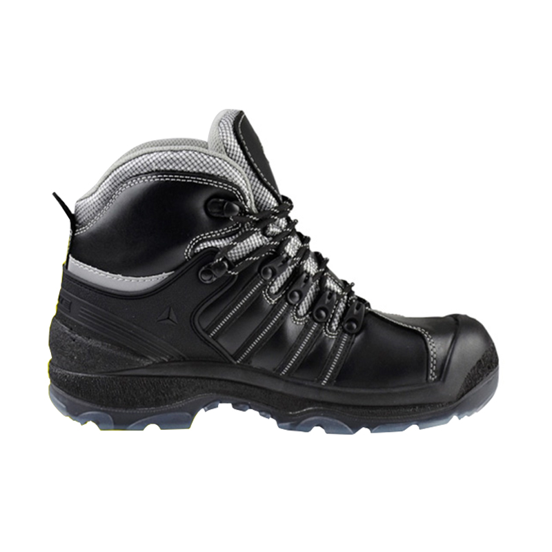 代尔塔301911 户外高帮防水防滑安全鞋,牛皮包覆,前端PU加强防护,后跟防水加强,可在浅水、滩涂等高湿度环境进行长时间的行走。透气的聚酯衬里,可脱卸预成型聚酯纤维EVA鞋垫,足弓反光条支撑设计。TPU外底,具有抓地力,SRC级防滑。适用于户外、复杂地形山区等环境。