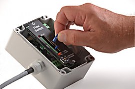The DFS 5.1 control relay can be set to turn ON and OFF at any flow rate between 0.25 and 10 ft/sec (0.075 to 3 m/sec). Insert two links for separate ON/OFF set points or just one link for a Hi or Lo flow alarm. Set the relay actuation time delay from 0 to 80 seconds.
