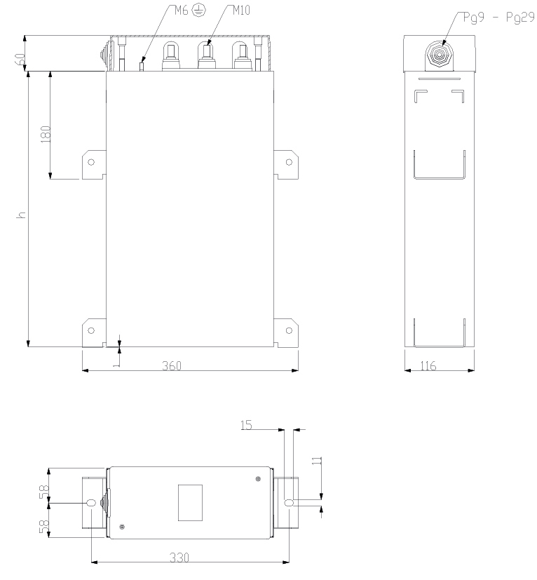 具有低损耗的自修复电容器金属化聚丙烯电介质,不含浸渍液体。安装在矩形钢板外壳中,其外部有放电电阻,由端子保护。