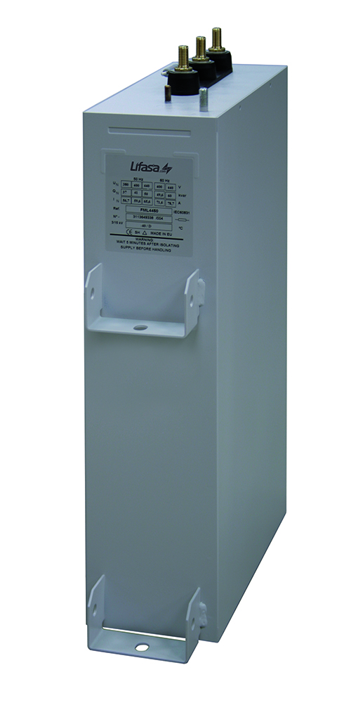 LIFASA capacitors are manufactured using the most advanced technologies, coming from an in depth knowledge of the manufacturing process and also from very strict laboratory and R+D tests. The enormous experience in installations, acquired over many years, allow us to incorporate in the new design the necessary characteristics to optimize the use of the product.Capacitors are composed of capacitive elements wound from low loss polypropylene film. This dielectric is vacuum metallized, what gives it an excellent self-healing characteristic (MKP).Elements are covered with a thermo hardening resin of high dielectric properties and are not oil filled. Elements are connected to obtain the required reactive power and are mounted in steel cases. Void spaces between elements and the case are filled with a non-flammable, inert and non toxic material. Each element is individually protected.This construction system avoids any risk of explosion of the capacitor and meets all the tests specified in the IEC 60831-1 and IEC 60831-2 standards.