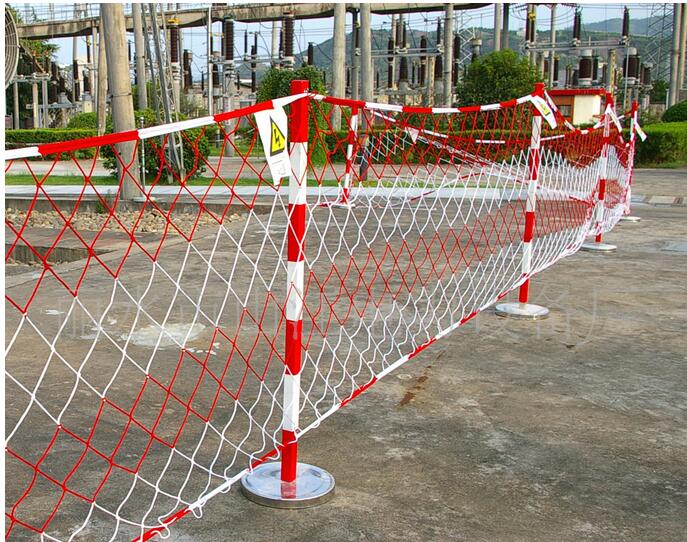 安全围网性能及特点:围网由抗老化能力强的轻型红(白)尼龙绳编织织而成,红(白)布包边;围网的上边沿配“止步,高压危险”警示牌; 支撑杆采用铁杆、不锈钢、环氧树脂等材料制成, 上面 设有挂钩,可以牢固张挂尼龙网,使之不易被掀起脱离;底座有铸铁和收缩式铁叉等,可供用户选择搭配使用。