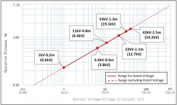 | 操作启动标准电压 | 60cm对6.6kV(3.8kV对地) *在长谷川的标准条件下。 | |