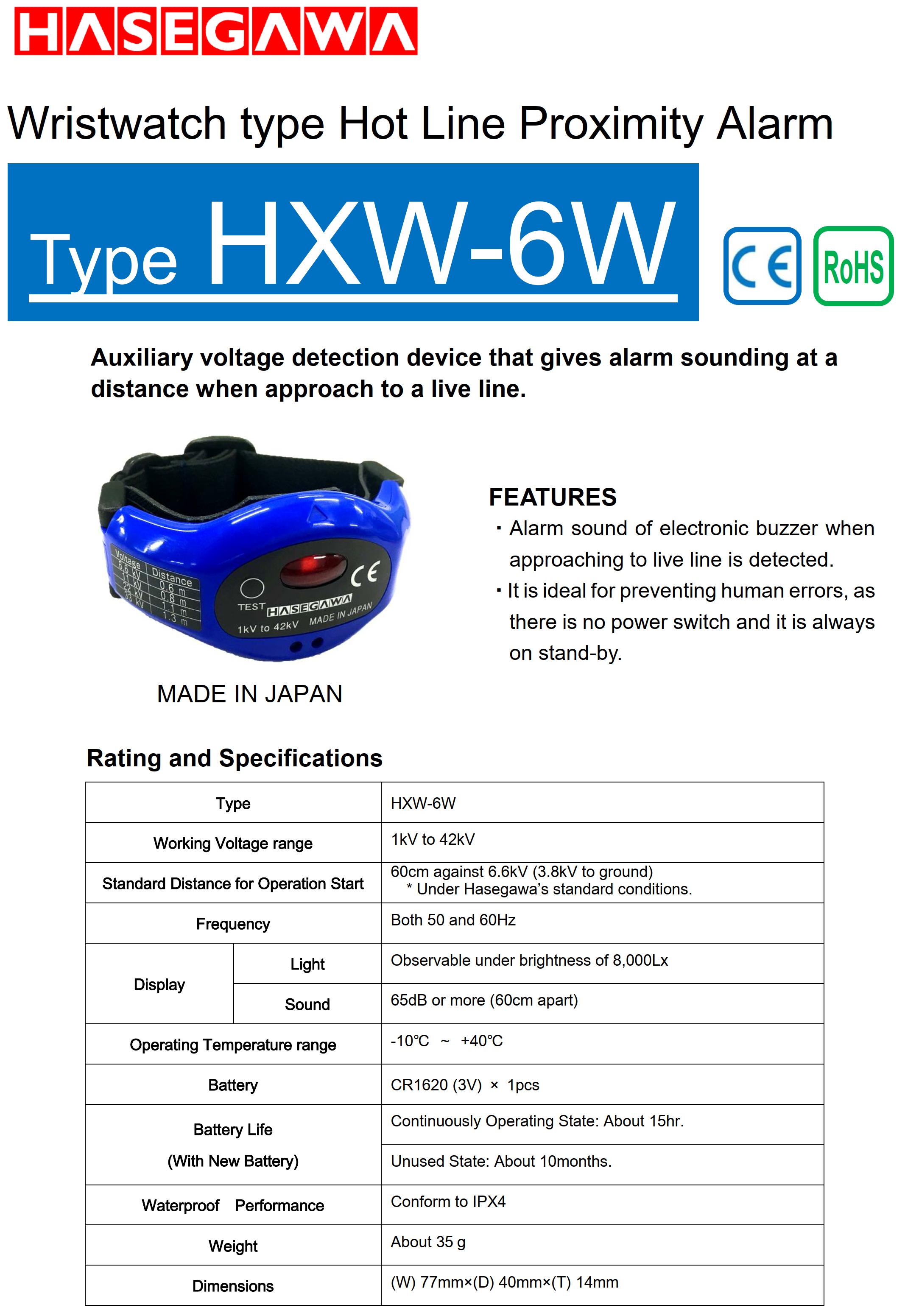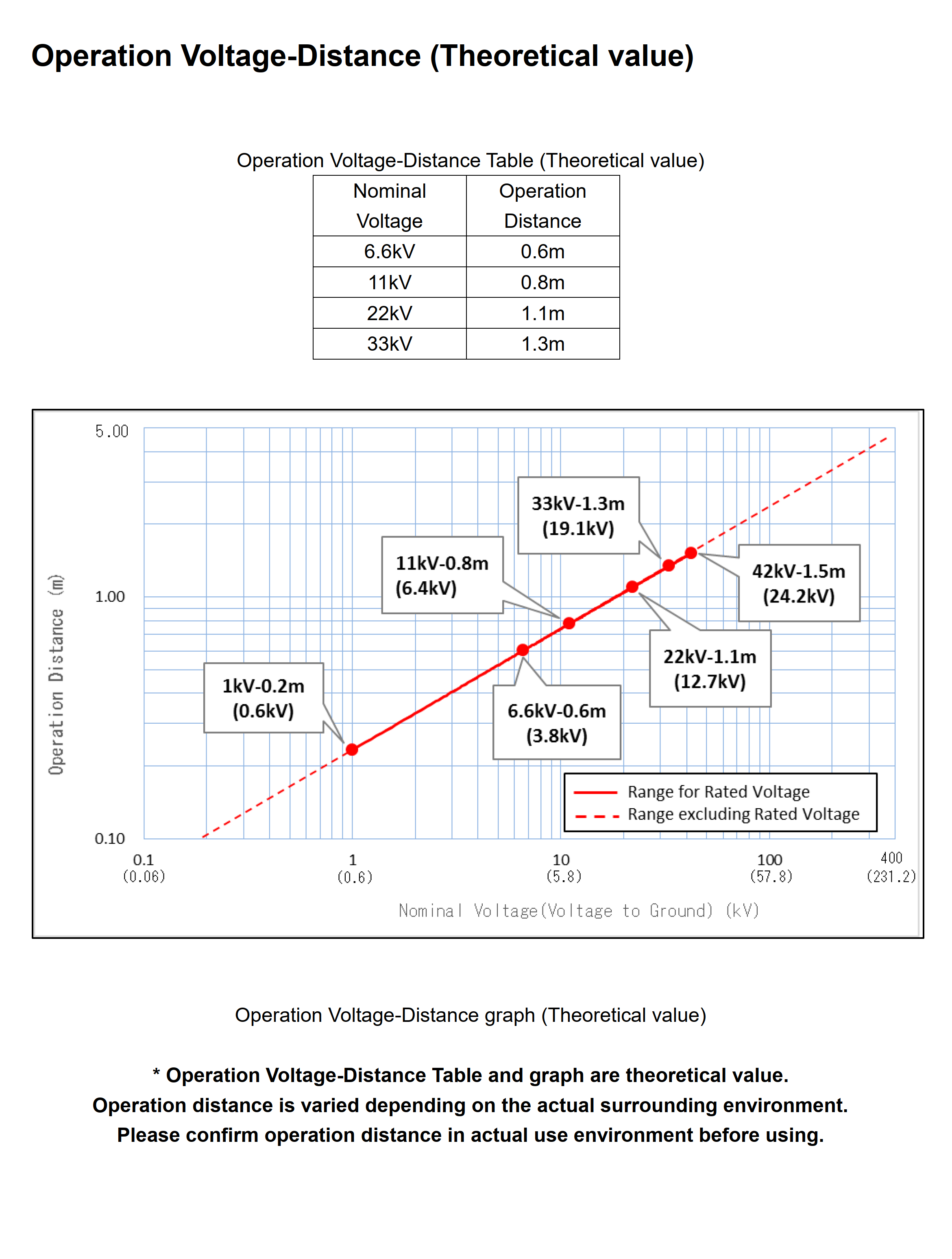 | Standard Distance for Operation Start | 60cm against 6.6kV (3.8kV to ground) * Under Hasegawa’s standard conditions. | |
