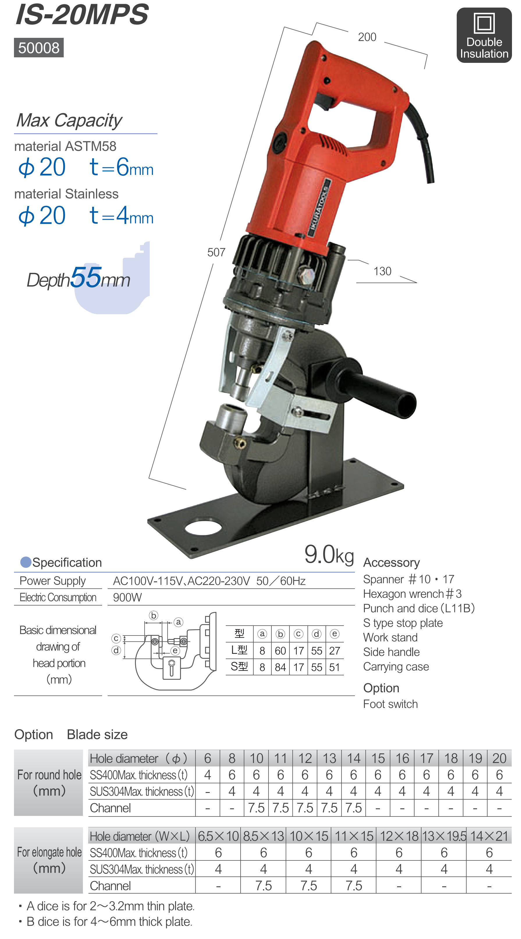 View Larger Image IS-20MPS电动液压冲孔机2018-12-24T18:09:19+08:00产品简介技术参数附注信息产品简介Mini PuncherIS-20MPS电源AC100V 50 / 60Hz额定功耗900W质量9.0公斤标准配件缝纫扳手#10·17,六角扳手#3,冲头·模组(L 11 B) S型止动板,工作台,侧手柄,手提箱(铁制)技术参数附注信息 想分享本页内容?请选择分享平台→ 相关项目 HV-245 伸缩式绝缘操作杆 伸长13.56米 收缩1.83米 Gallery HV-245 伸缩式绝缘操作杆 伸长13.56米 收缩1.83米 29 12 月, 2021 台湾SEW 7012 IN数字式高压绝缘测试仪12KV Gallery 台湾SEW 7012 IN数字式高压绝缘测试仪12KV 23 12 月, 2021 台湾SEW 2015 PM电力表 Gallery 台湾SEW 2015 PM电力表 23 12 月, 2021 台湾SEW 4538 mO毫欧表0~2000Ω Gallery 台湾SEW 4538 mO毫欧表0~2000Ω 23 12 月, 2021 台湾SEW 279A HD高低压验电器80V~11.4kV AC Gallery 台湾SEW 279A HD高低压验电器80V~11.4kV AC 23 12 月, 2021 台湾SEW 325 SVD安全电压感应器 验电器 Gallery 台湾SEW 325 SVD安全电压感应器 验电器 23 12 月, 2021 台湾SEW RCB-411电阻测试箱 Gallery 台湾SEW RCB-411电阻测试箱 23 12 月, 2021 台湾SEW DSR-50K & DSR-100K高压放电棒 Gallery 台湾SEW DSR-50K & DSR-100K高压放电棒 23 12 月, 2021 台湾SEW 290L HD高压验电器6kV~81.5kV Gallery 台湾SEW 290L HD高压验电器6kV~81.5kV 22 12 月, 2021 台湾SEW 305 SVD个人安全防护电压探测仪100V~69kV Gallery 台湾SEW 305 SVD个人安全防护电压探测仪100V~69kV 22 12 月, 2021 台湾SEW VOT-53电压/导通性测试仪 Gallery 台湾SEW VOT-53电压/导通性测试仪 22 12 月, 2021 台湾SEW 3812 CL数字式交直流钳型表 Gallery 台湾SEW 3812 CL数字式交直流钳型表 22 12 月, 2021