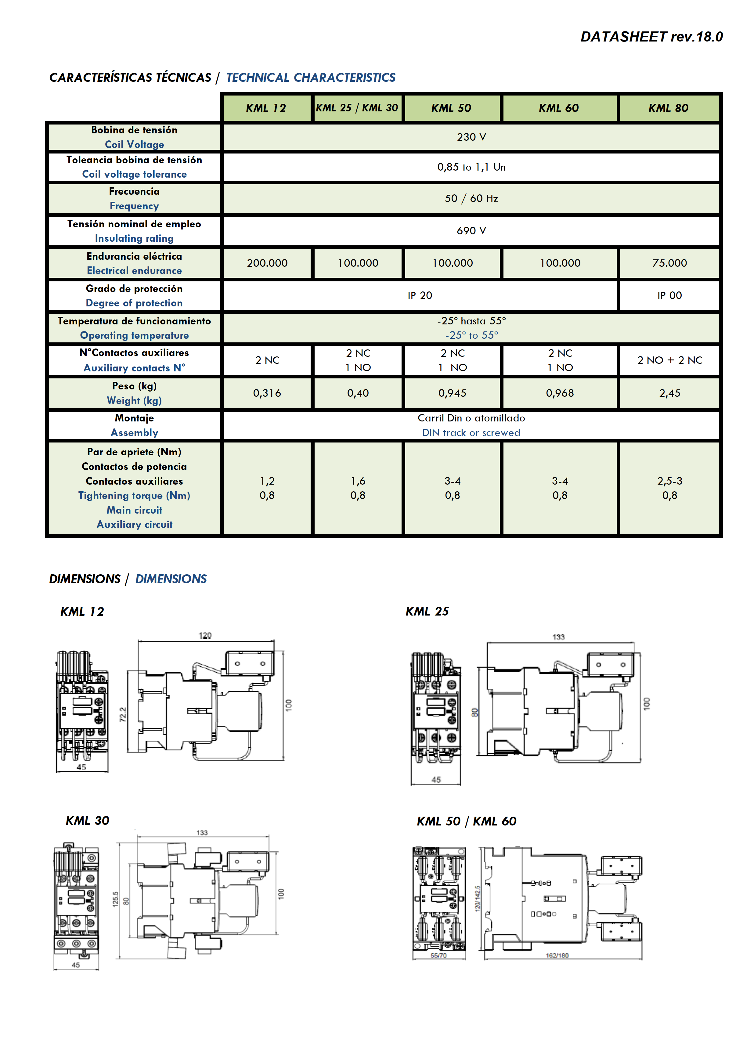 | 辅助触点N? | KML12 2NC KML25 2NC / 1NO KML50 2NC / 1NO KML60 2NC / 1NO KML80 2NO + 2NC |