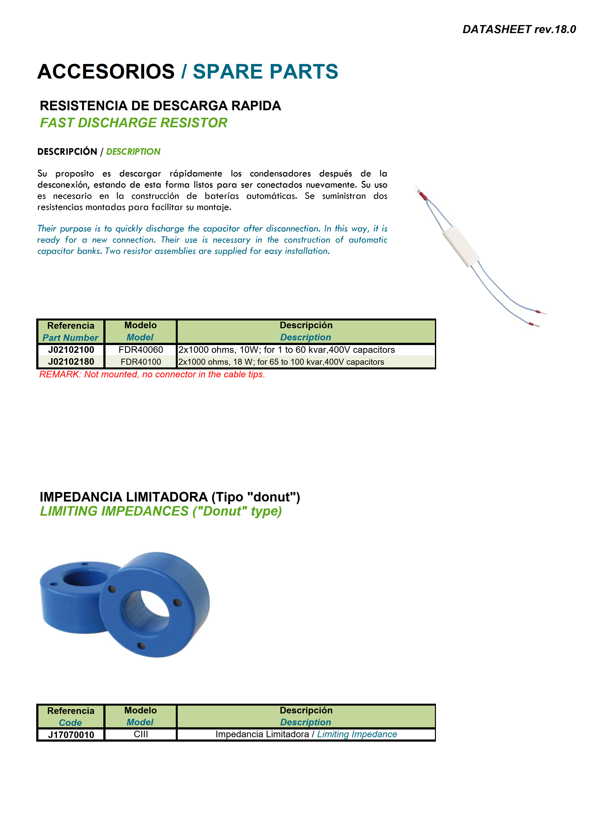 The block of preload consists of three auxiliary contacts of preclosing, along with resistance (two by phase) through which the capacitors are preconnected to the network, cushioning therefore the peaks of connection current. Once the preload resistances have reduced the current peaks that take place in the connection of the capacitor, automatic opening of the auxiliary contacts occurs with the objective of not having unnecessary losses.
