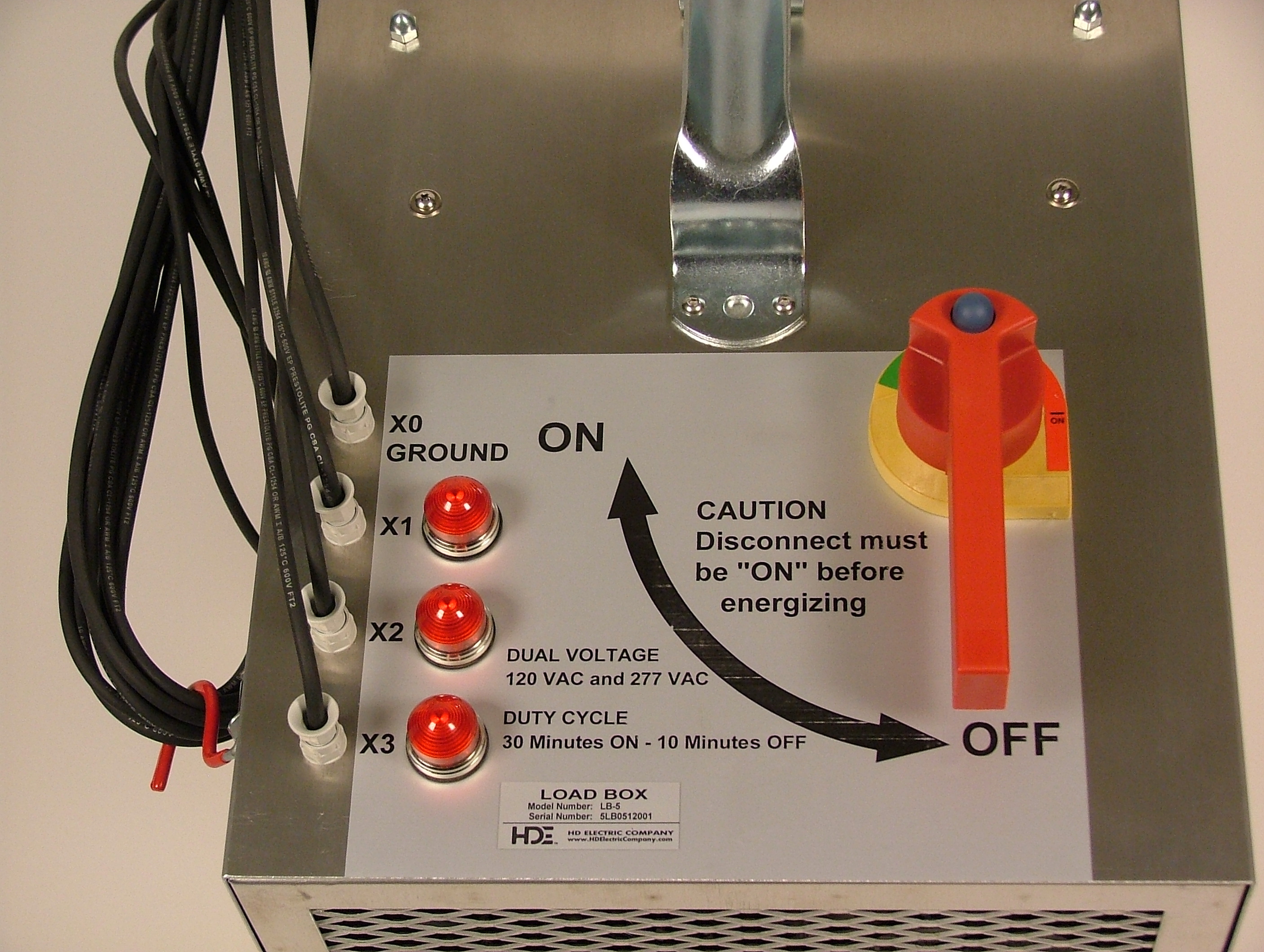 Load Box model LB-5-1 includes an additional switch to disconnect the center of this Y connected load from the ground lead. This is required for corner grounded delta transformer connections.