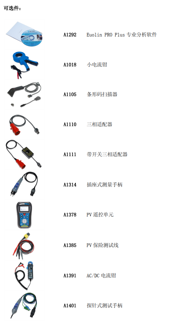 -?????光伏:计算STC值;效率计算;图形显示I/V曲线;2电压通道、2电流通道可同时测量交流和直流侧;可选PV远程模块(A1378)同时测量光照度和模块温度。