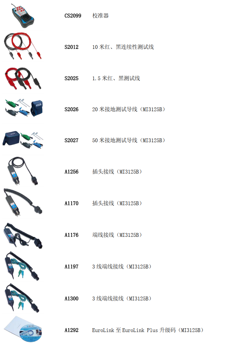 MI3125B ? 标准配置:(特别提示:测试接地电阻须选S2026或S2027测试线)