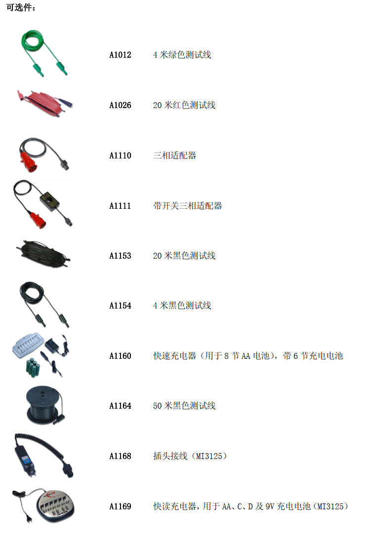 MI3125B ? 标准配置:(特别提示:测试接地电阻须选S2026或S2027测试线)