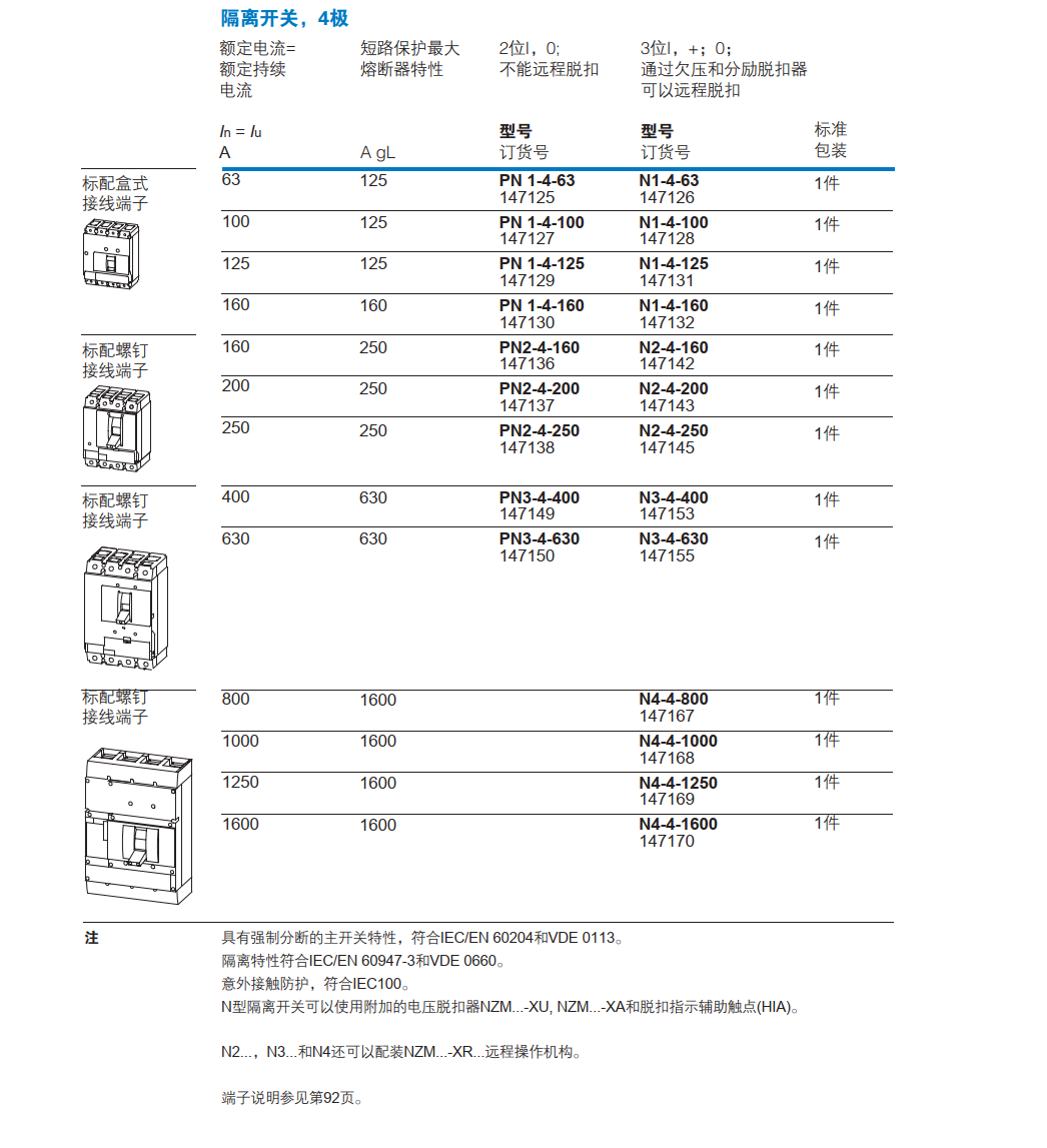 N: 隔离开关?????????????????????????? PN:不带脱扣机构的隔离开关