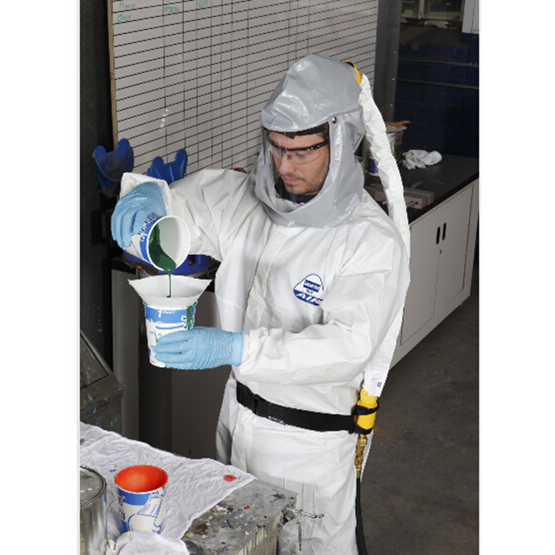 可与电动送风系统(PAPR)及压缩空气过滤系统(AFU)配合使用。与AFU配合使用时,需另行配置供气软管A161368-00