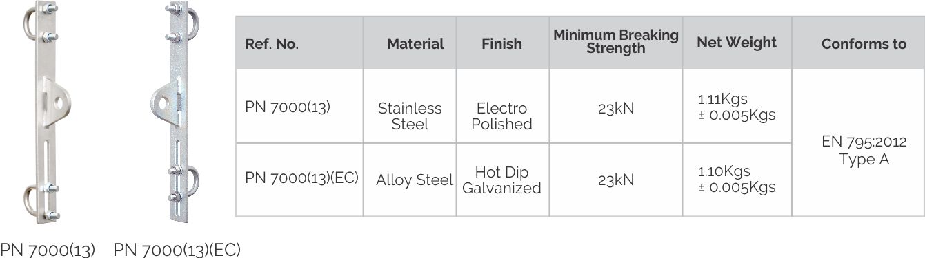 板用于安装由SS钢丝绳制成的垂直锚绳的四肢钢板安装在带有Ubolts和nylock螺母的梯子上。固定在两个横档上可为系统提供更好的结构强度。