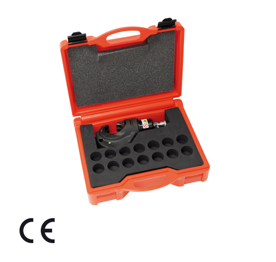 - Plastic case for crimping head and 14 semi-circular crimping dies