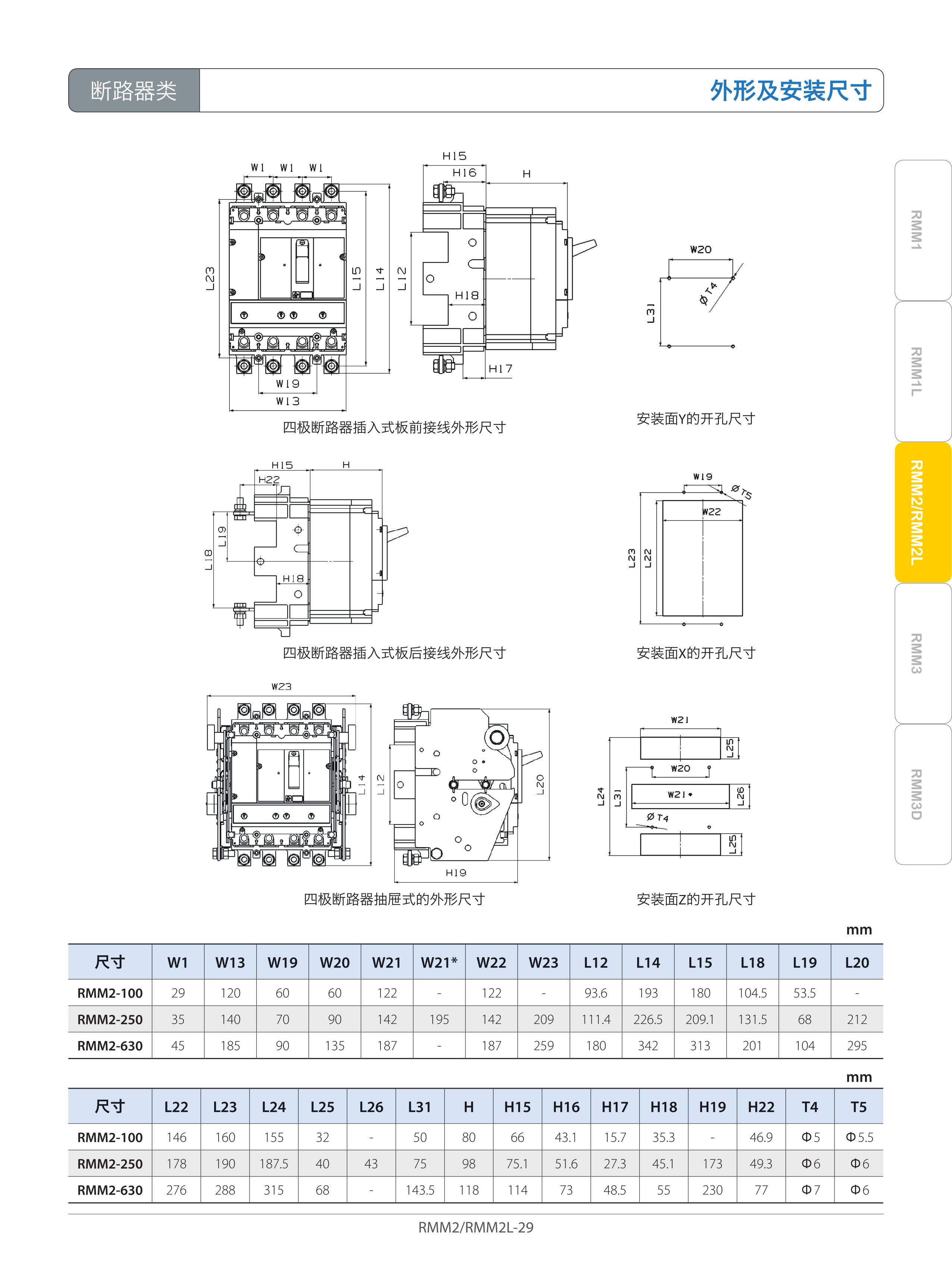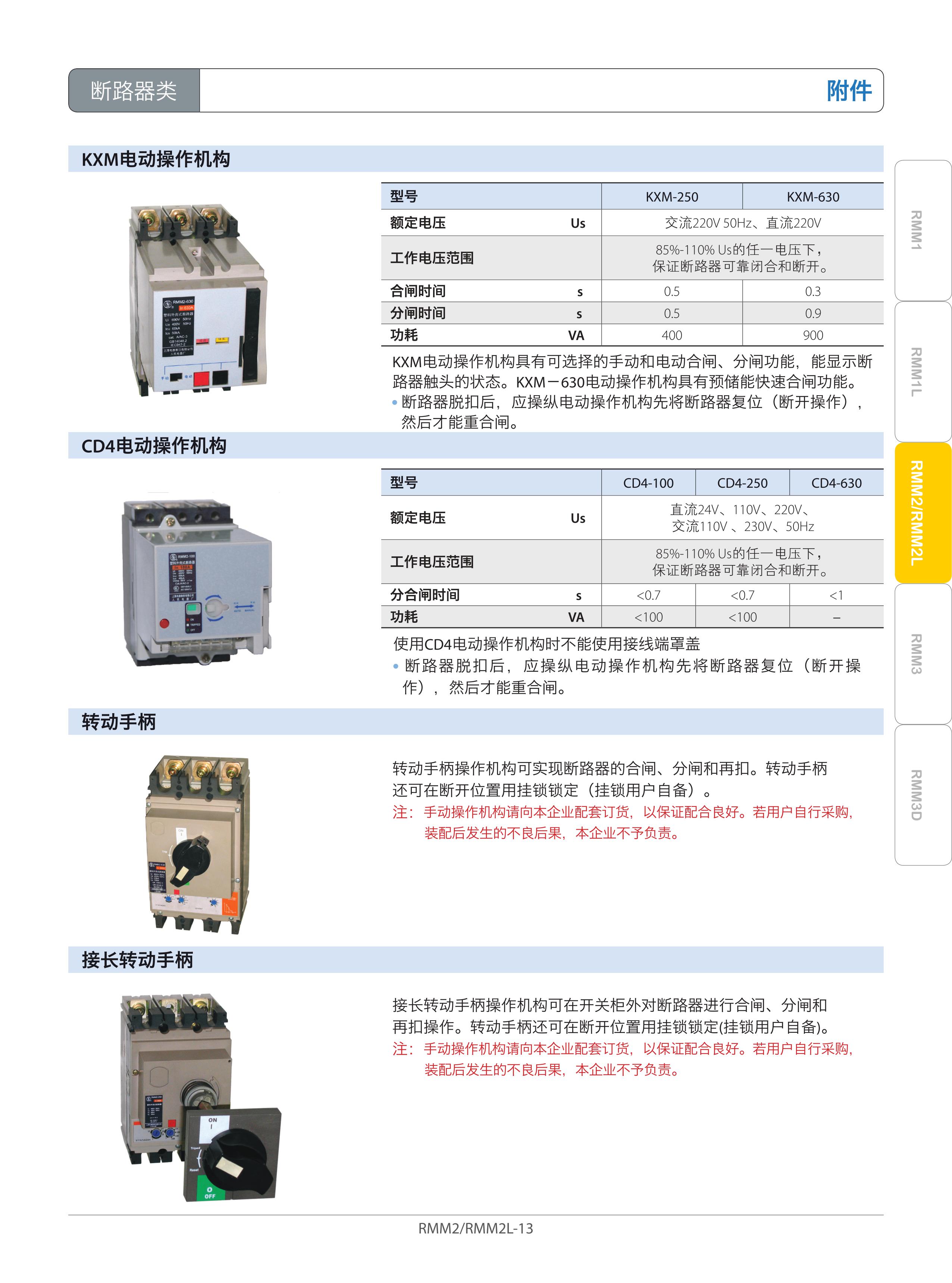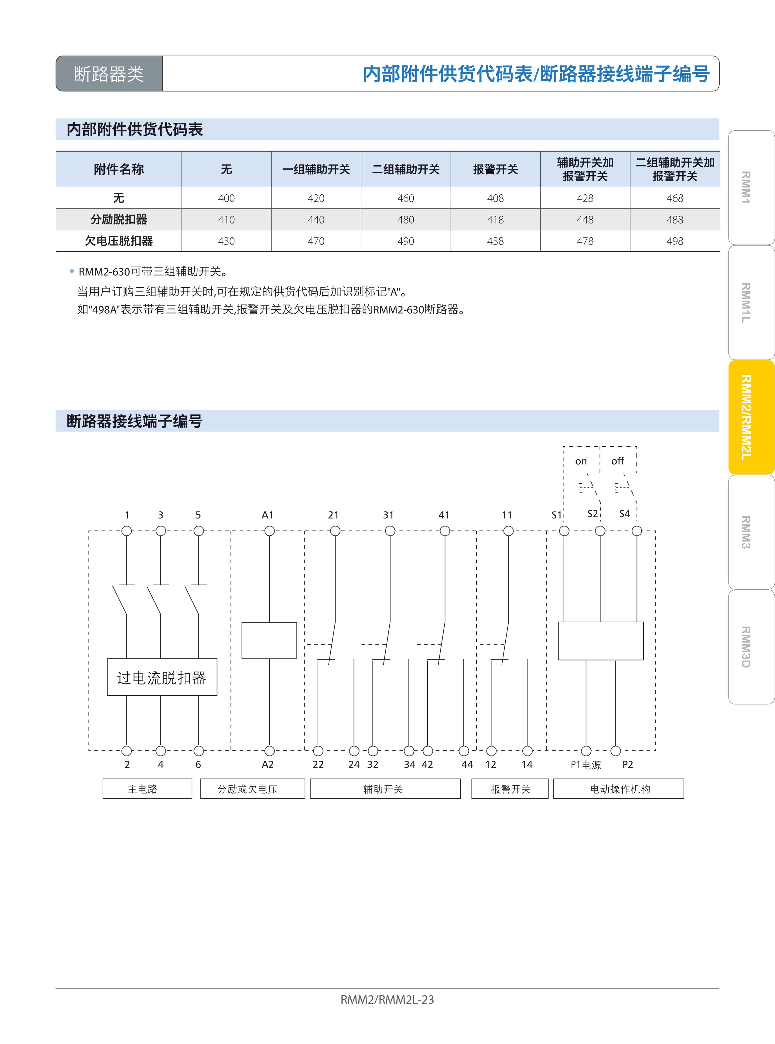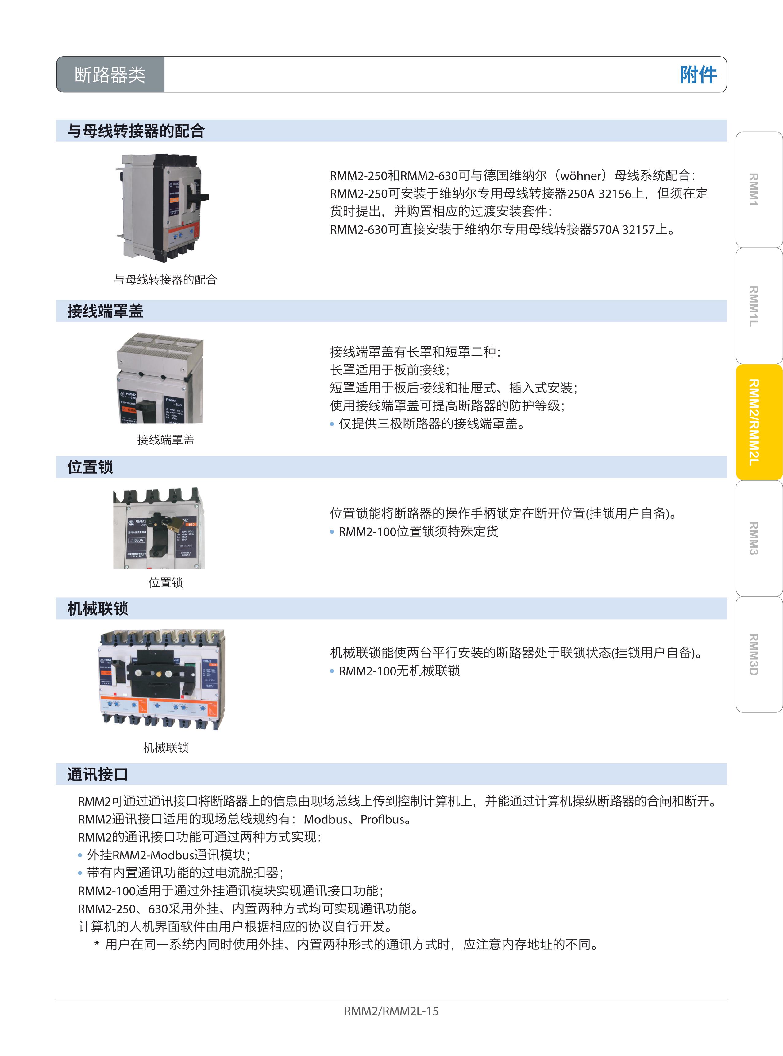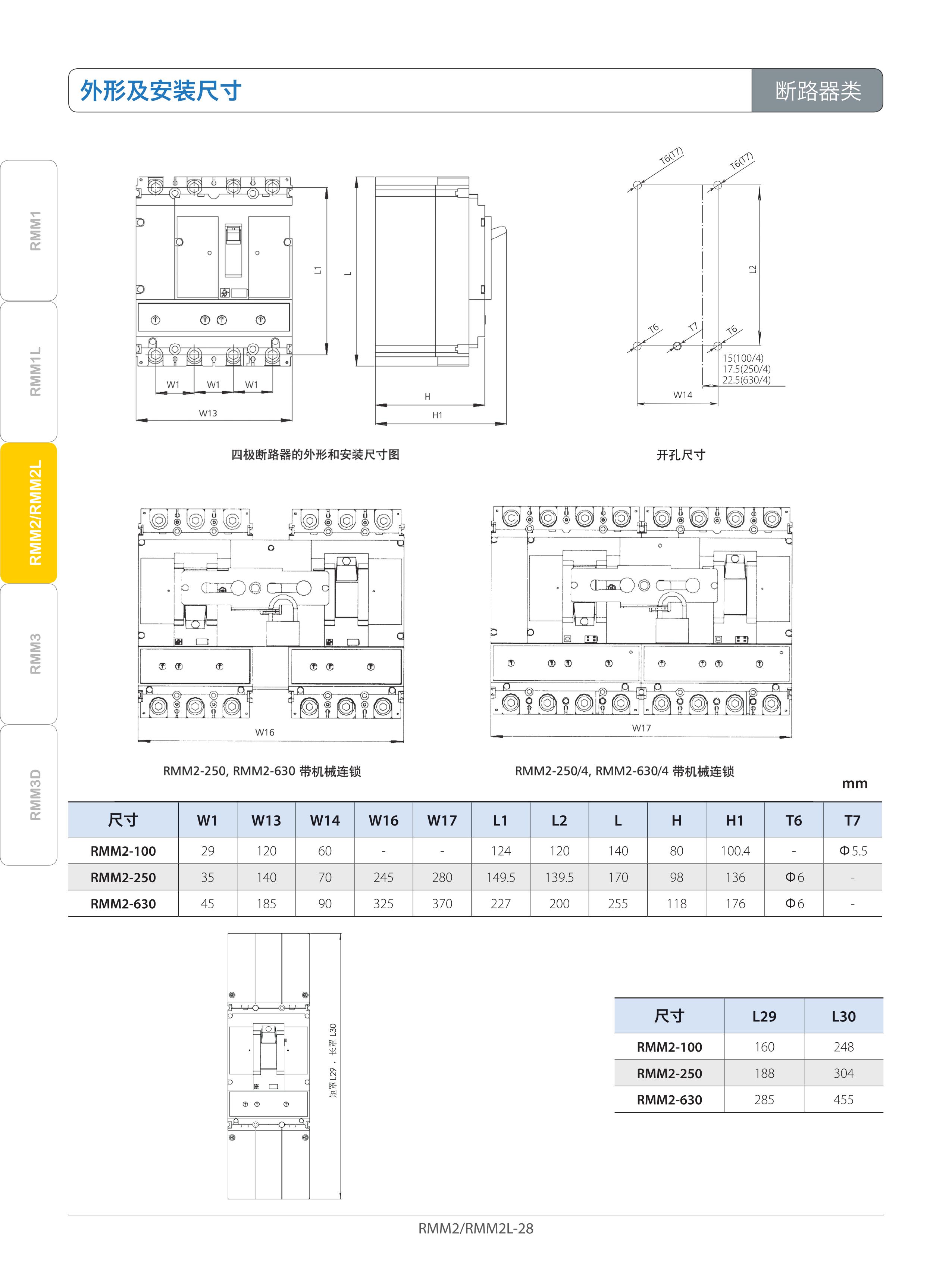 注:断路器一般为上进线,下出线,若用户要求RMM2-250、630下进线,应作为特殊订货提出。