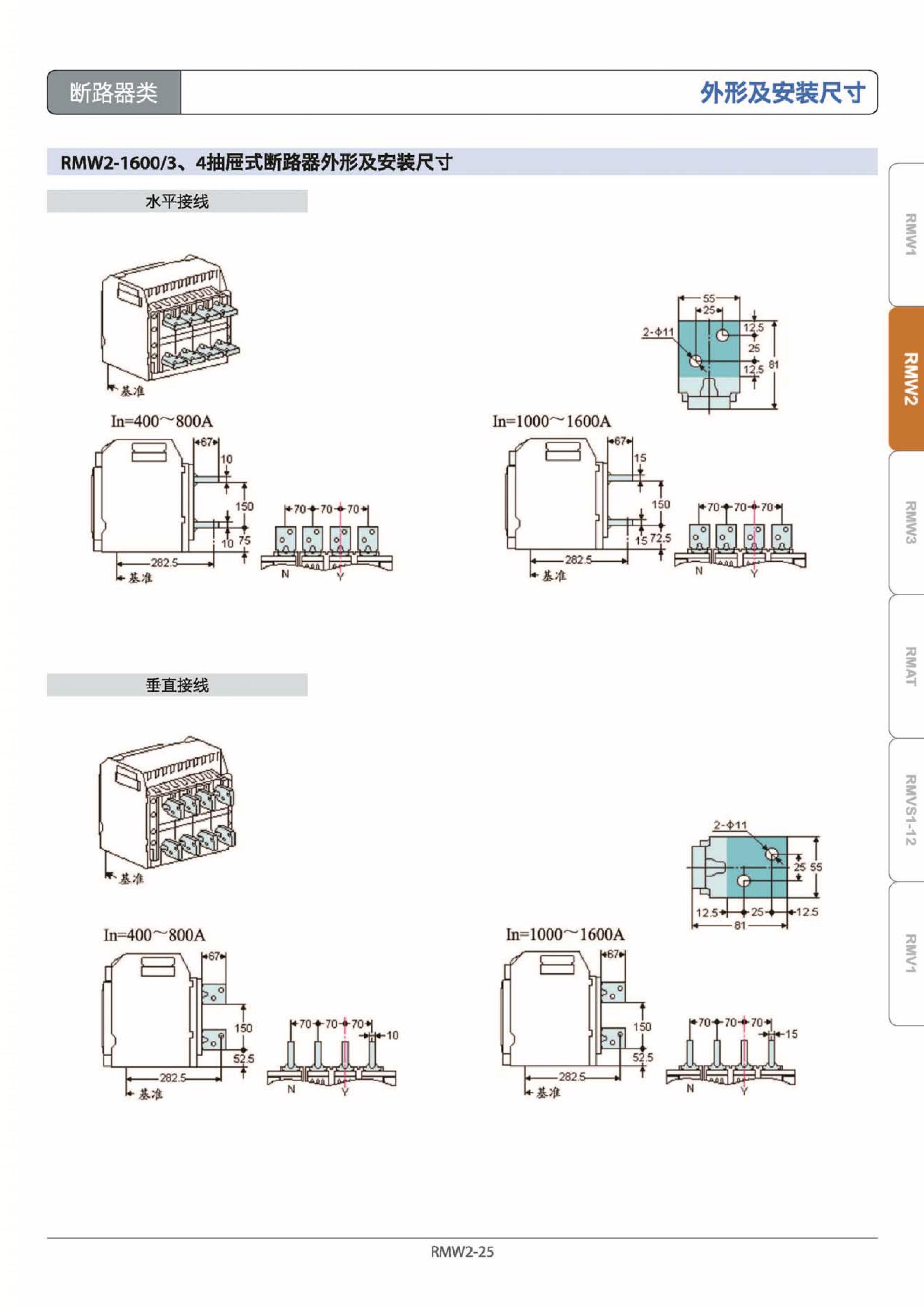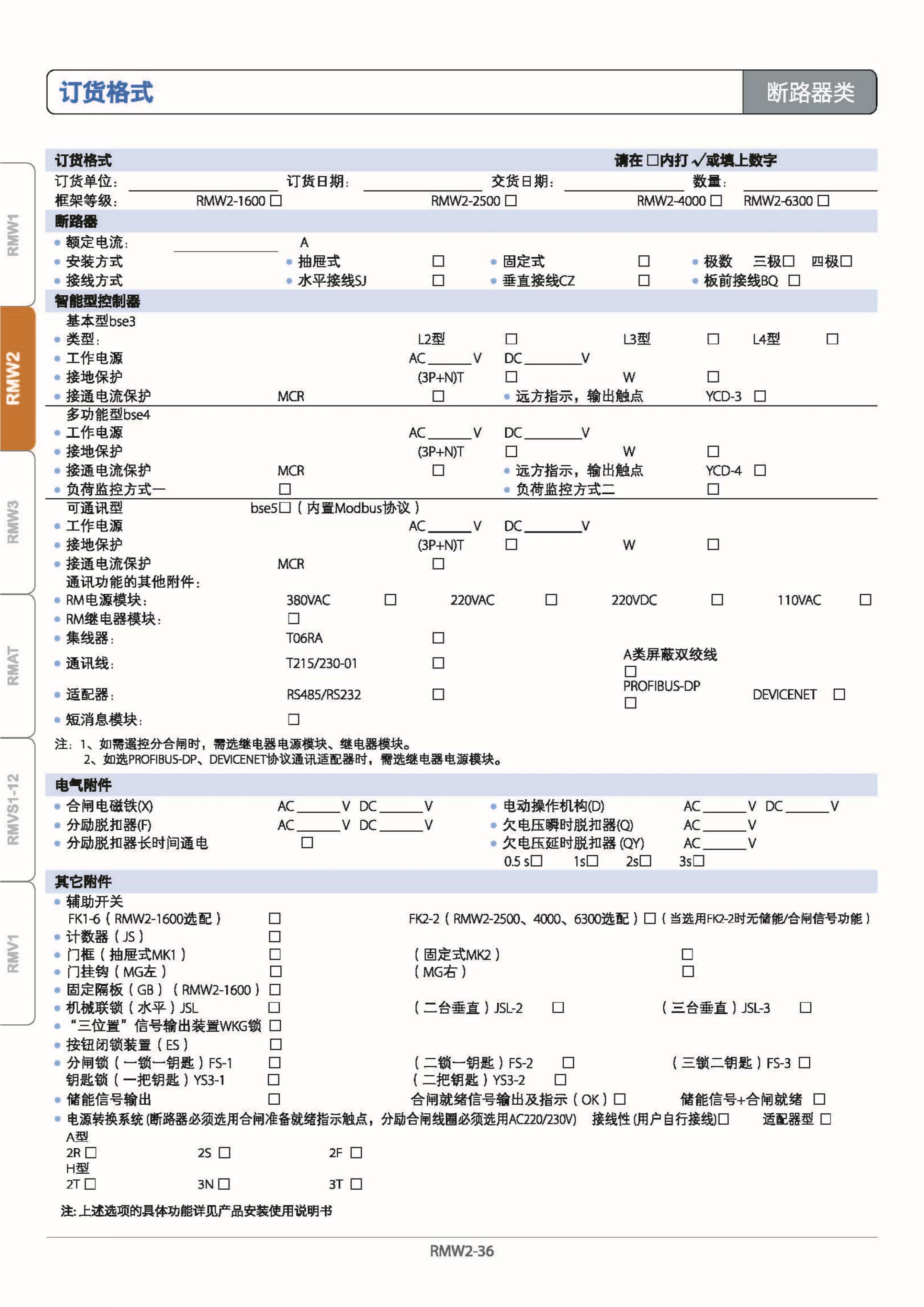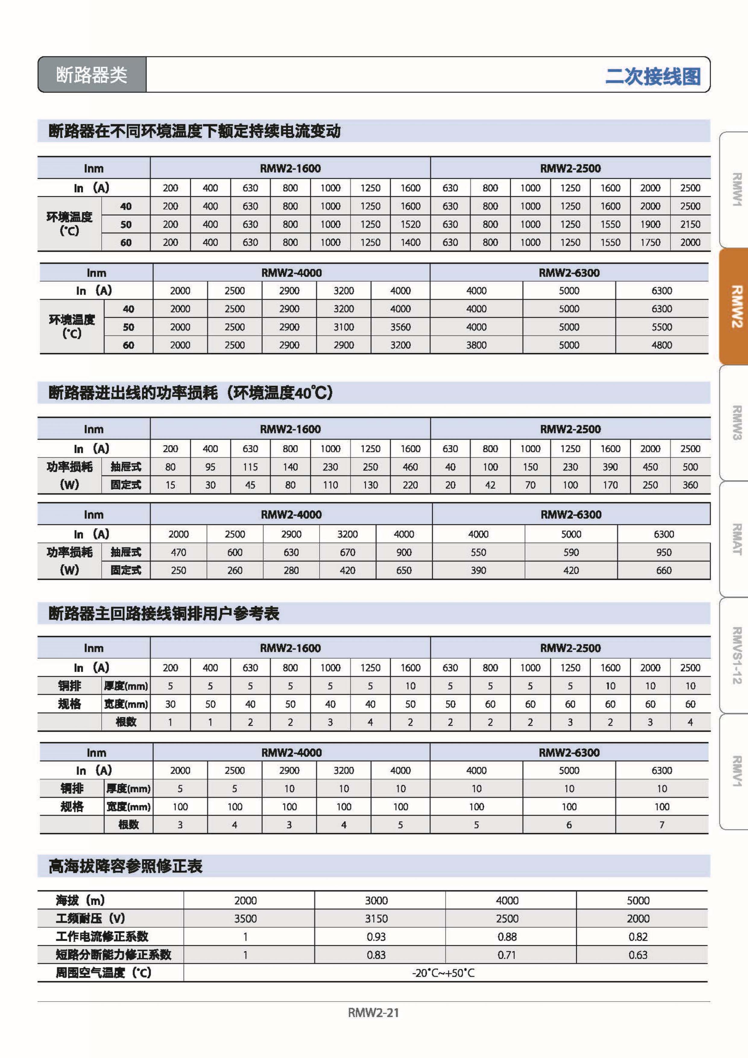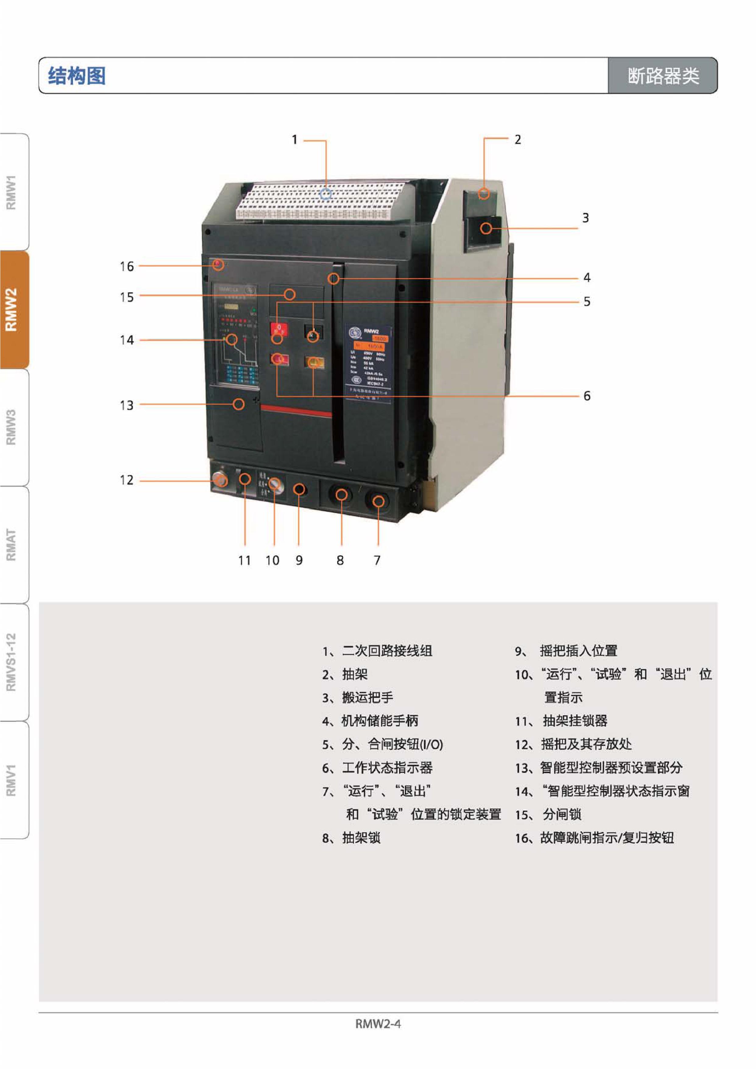RMW2系列智能型万能式空气断路器是上海人民电器厂的新一代产品。该系列产品设计采用了新技术,进一步增强了产品的性能和安全性。RMW2系列智能型万能式空气断路器适用于额定电压为交流50Hz,400V、690V,额定电流200~6300A,用于分配电能和保护线路、电源及用电设备免受过载、欠电压、短路、漏电、接地等故障的危害;具有较高精度的选择性保护,提高了供电可靠性。额定电流为630A及以下断路器,可以用作在交流50Hz,400V网络中直接操作电动机,作为控制电动机的偶然启动、停止之用。