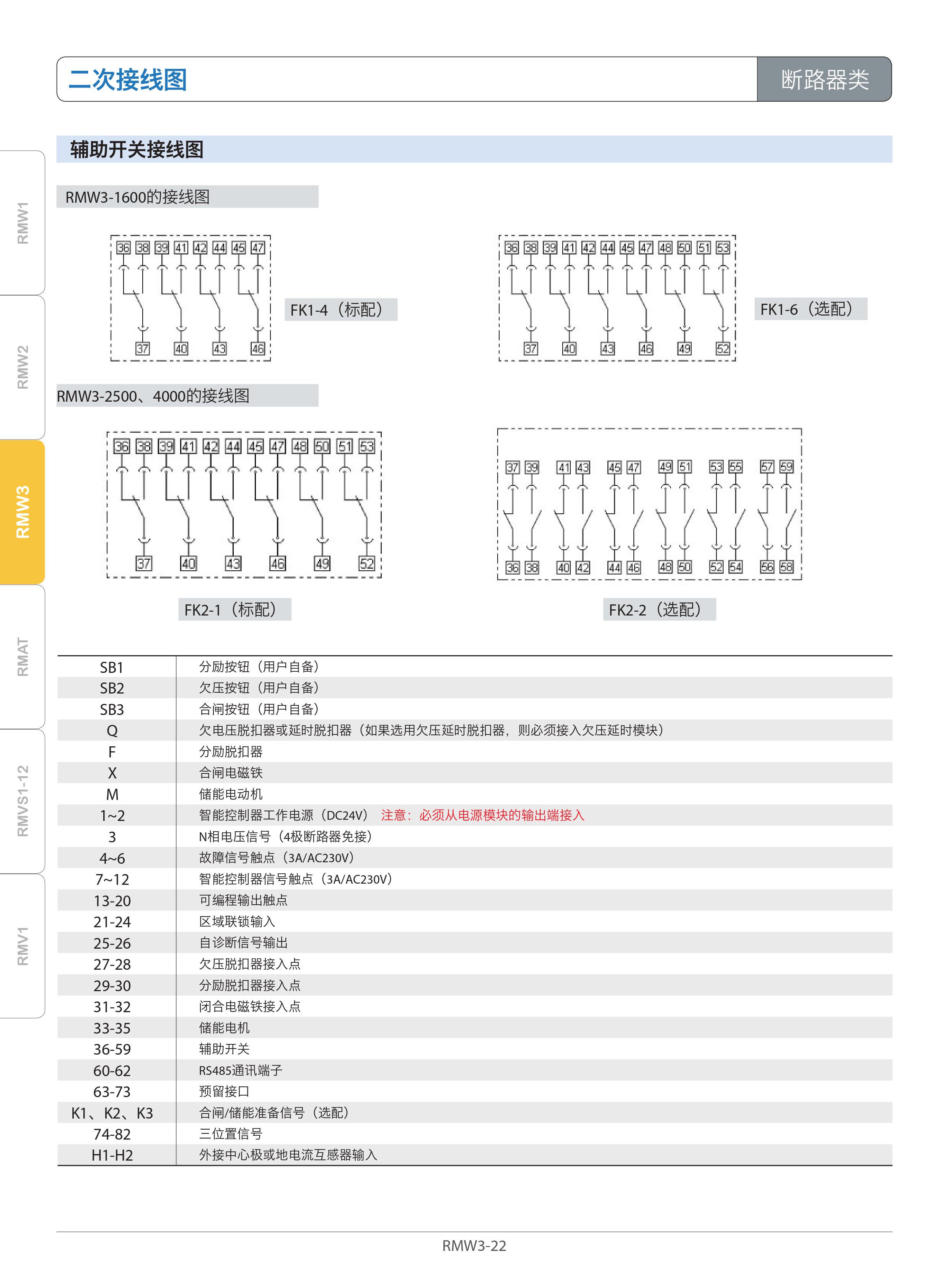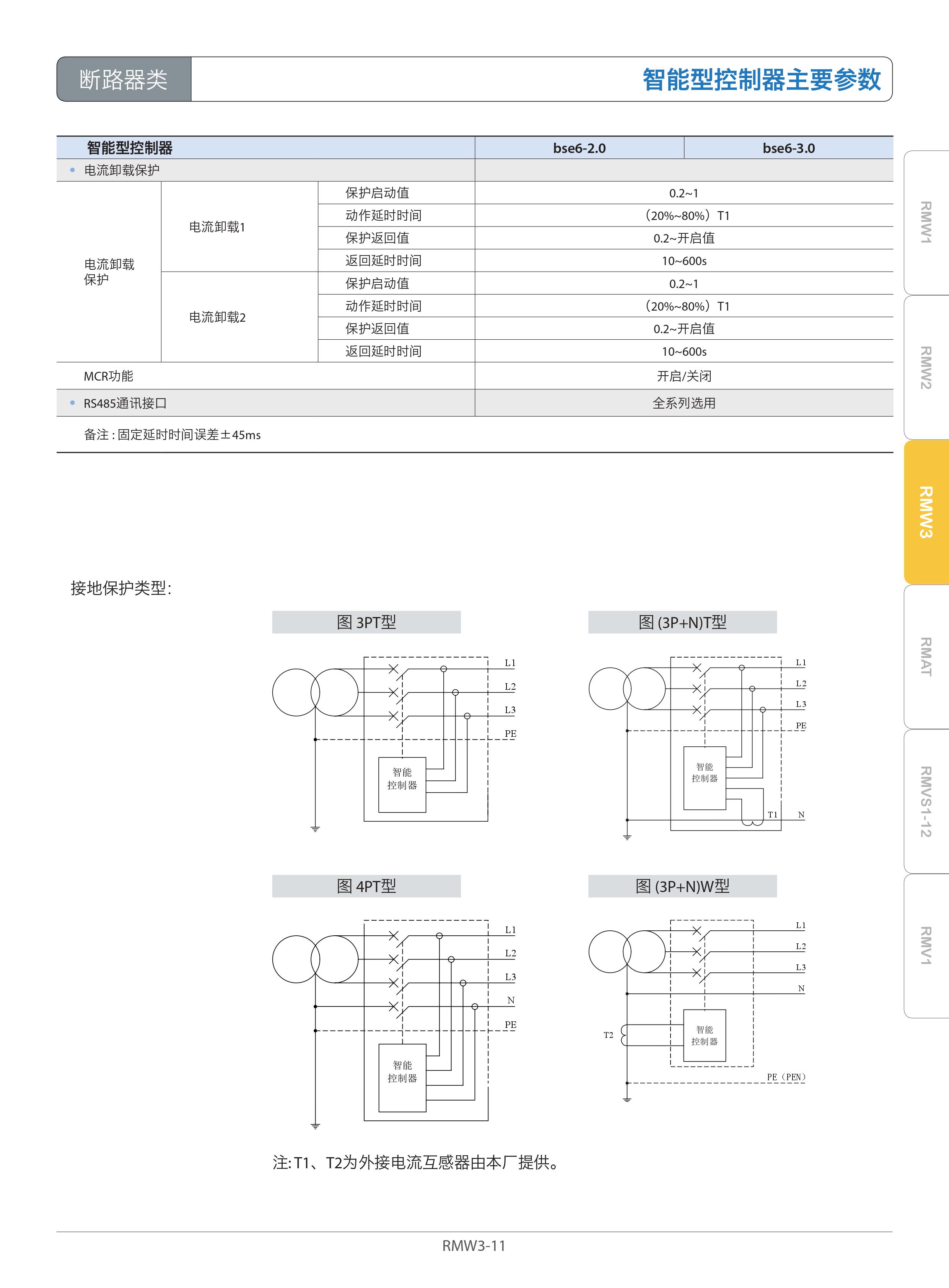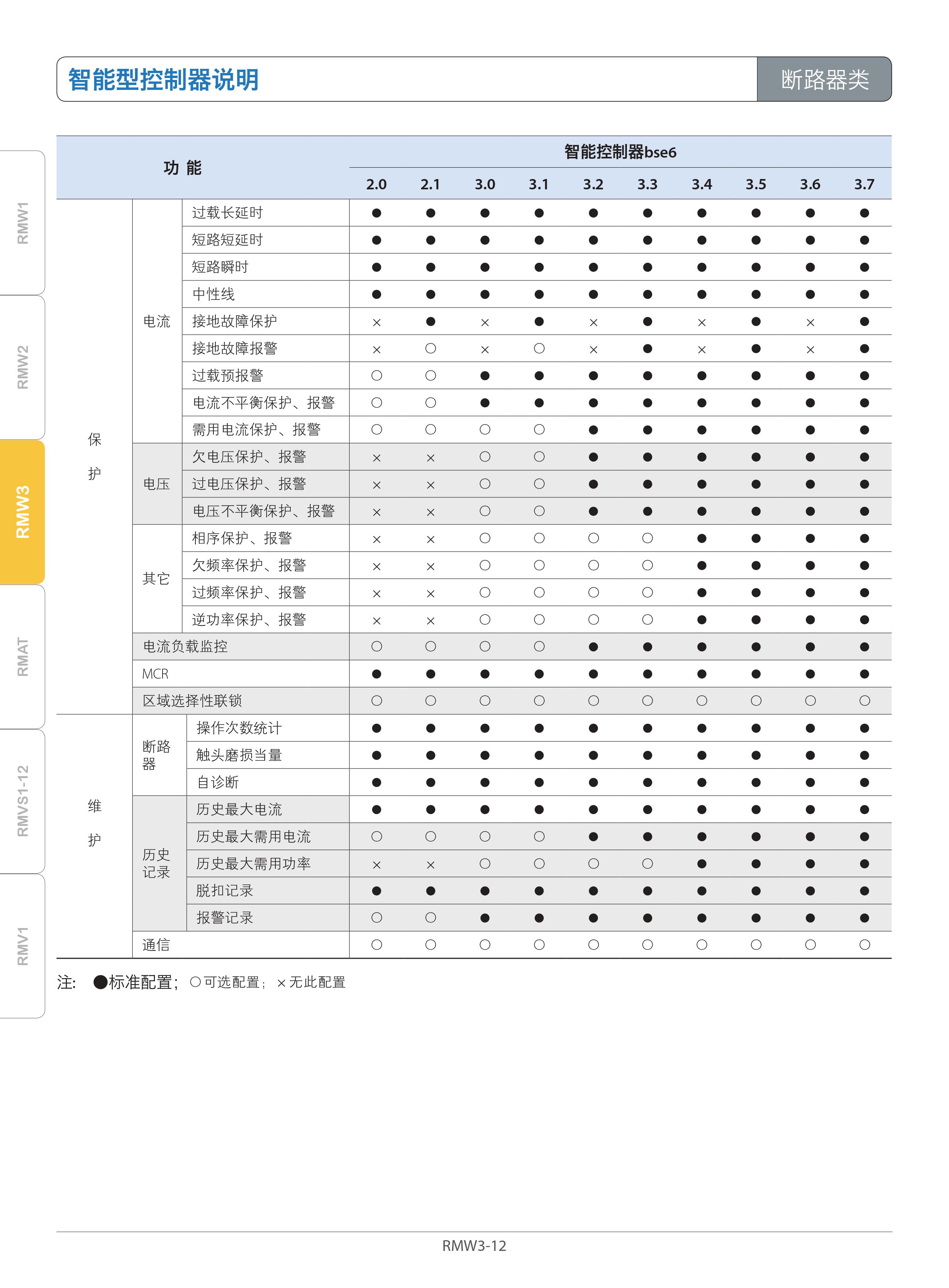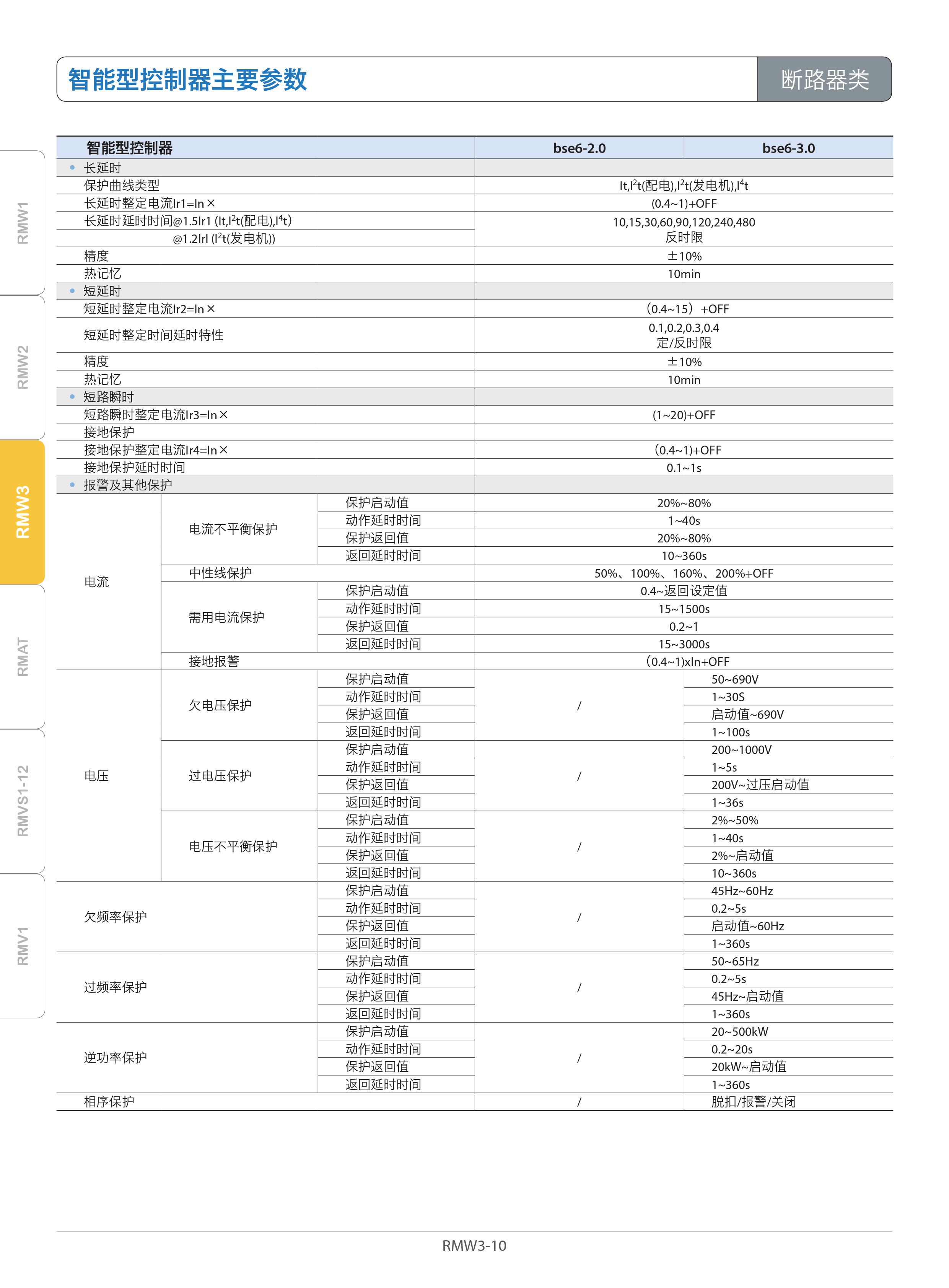 RMW3系列智能型万能式空气断路器是上海人民电器厂开发的新一代产品。该系列产品设计采用了新技术,进一步增强了产品的性能和安全性。RMW3系列智能型万能式空气断路器适用于额定电压为交流50Hz,400V、690V,额定电流200~4000A,用于分配电能和保护线路、电源及用电设备免受过载、欠电压、短路、漏电、接地等故障的危害;具有高精度的选择性保护,提高了供电可靠性。额定电流为630A及以下断路器,可以用作在交流50Hz,400V网络中直接操作电动机,作为控制电动机的偶然启动、停止之用。