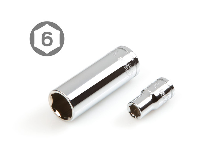 Narrowed diameter stretches to the base of the socket on small, deep-length sizes. This provides greater reach into tight, recessed areas.