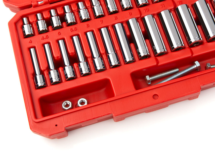 - Molded size markings for each tool inside the case