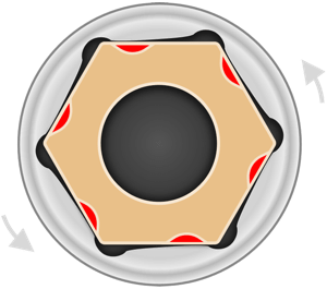 Radiused corners prevent fastener round-off by applying force to a fastener’s flat sides, rather than its corners.