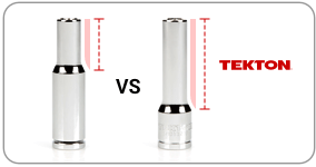 Narrowed diameter stretches to the base of the socket on small, deep-length sizes. This provides greater reach into tight, recessed areas.
