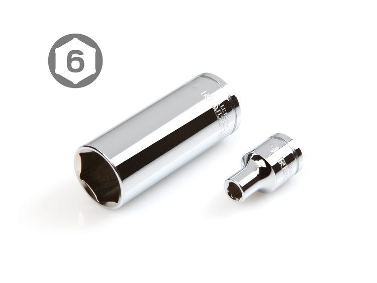 Narrowed diameter stretches to the base of the socket on small, deep-length sizes. This provides greater reach into tight, recessed areas.