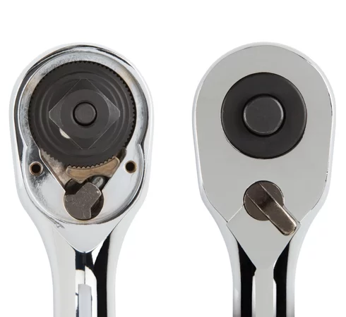 - Sockets are locked onto the ratchet tang by a detent ball and locking pin so that they can’t fall or be pulled off.