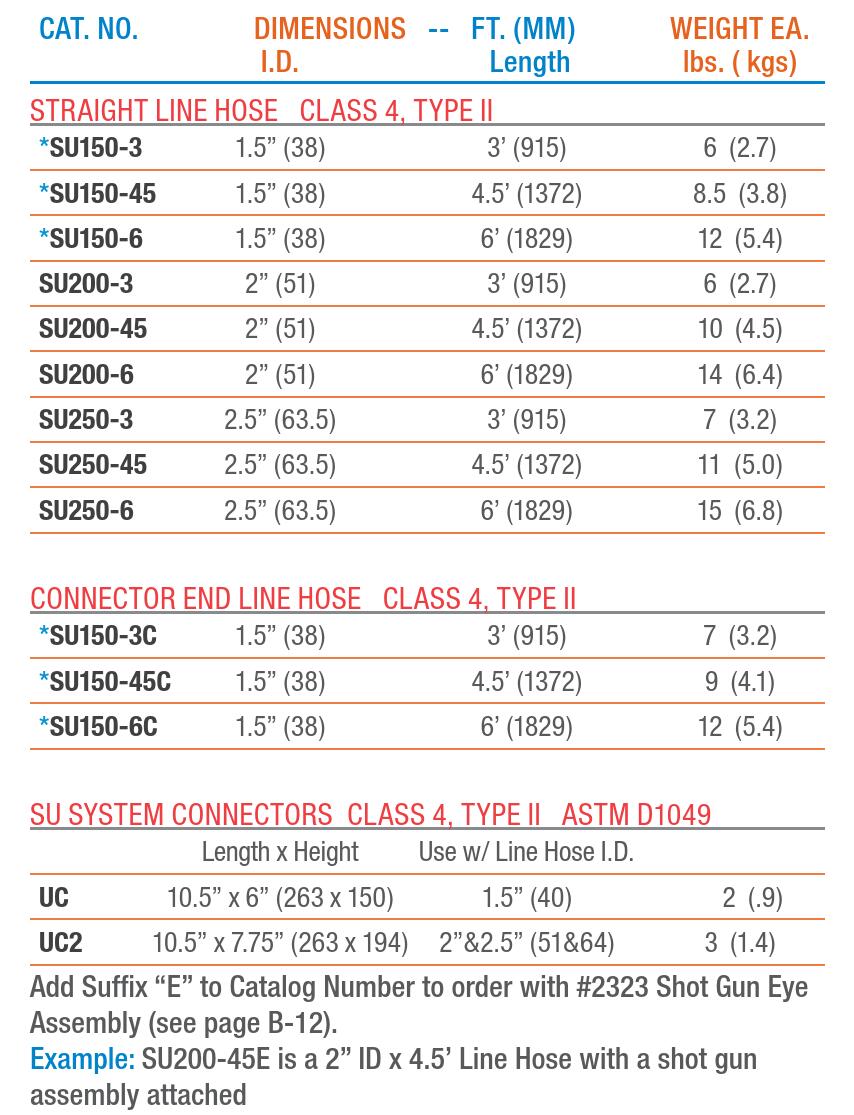 example: su200-45e is a 2” ID x 4.5’ Line Hose with a shot gun