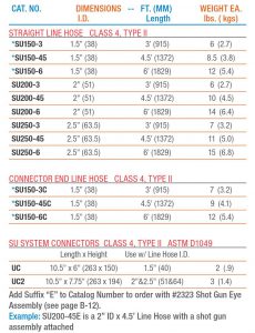example: su200-45e is a 2” ID x 4.5’ Line Hose with a shot gun
