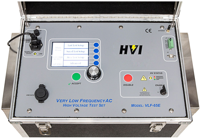 The?VLF-65E?is a top performer from the latest generation of HVI VLF AC hipots using a air-cooled, solid state design with microprocessor control. Test programming, data retrieval, and custom PC software are intuitive and easy to learn. This unit is portable, affordable, and designed to withstand years of field use.