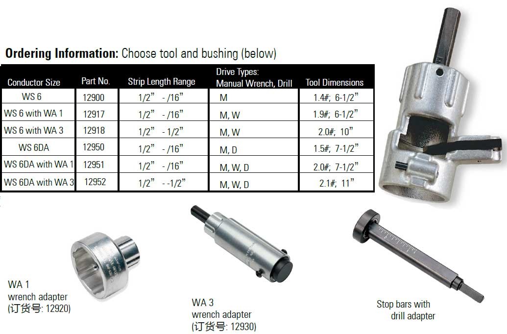? WA3 适配器允许剥除长度达 5-1 / 2 英寸(139.7 毫米)并可搭配SW2 棘轮扳手使用