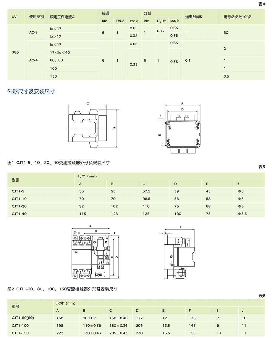CJT1系列交流接触器适用于交流50Hz(或60Hz),额定电压至380V、电流至150A的电力线路中,主要用于远距离频繁接通和分断电路,并与适当的热继电器或电子保护装置组合成电动机起动器,以保护可能发生过载的电路。