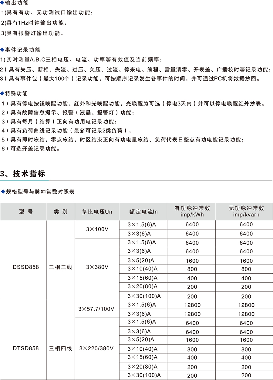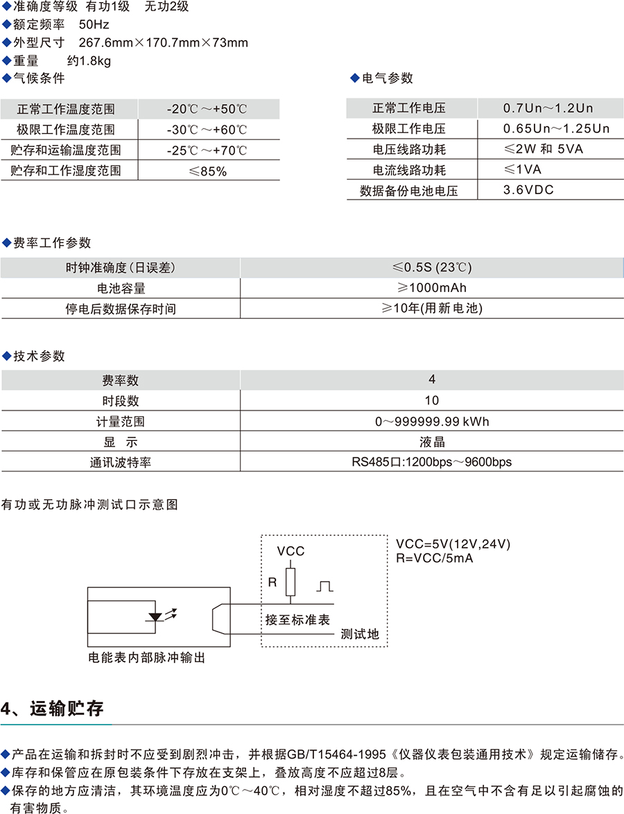 其性能指标符合《1级和2级静止式交流有功电度表》和《多功能电能表》标准对多功能电能表的各项技术要求。通讯规约符合《多功能电能表通信规约》及用户提出的特殊通信要求。